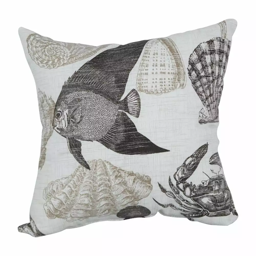 Blazing Needles 17 in. Square Polyester Outdoor Throw Pillows. Sealife Driftwood – Set of 4