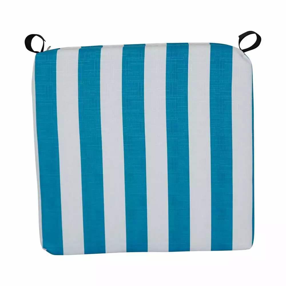 Blazing Needles 20 x 19 in. Patterned Outdoor Chair Cushions. Timeless Stripe Turquoise – Set of 2