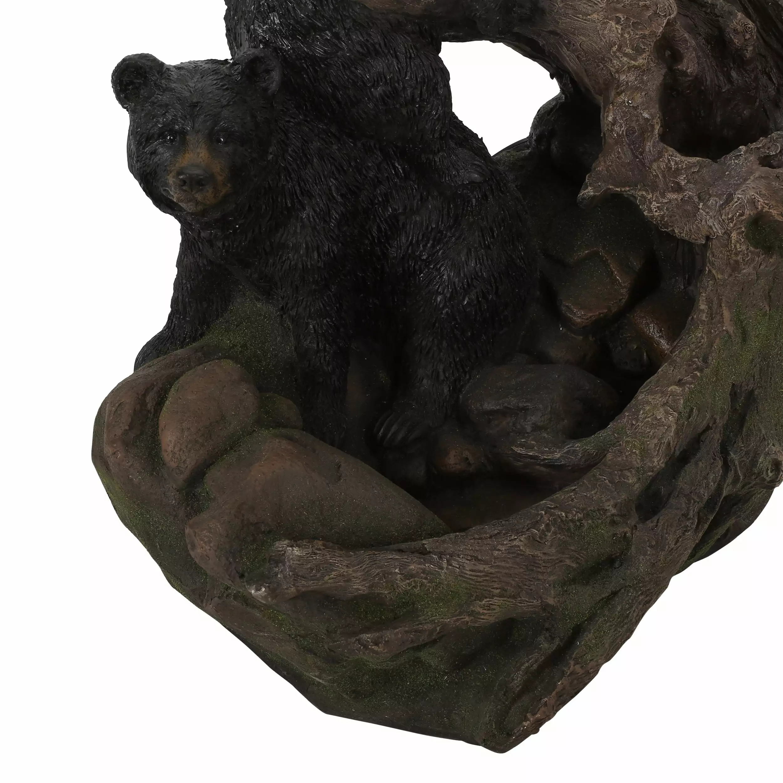Bring a lighthearted yet tranquil atmosphere to your outdoor space with a charming accessory. Our garden fountain features a calm waterfall flow that continuously circulates using an included pump. bringing a playful aura to any backyard or patio. Crafted with an incredibly durable polyresin material. this decorative accessory offers a weather-resistant structure that allows outstanding attention to detail. Finished with bears on a log and enchanting underwater lights. our water fountain is sure to add a touch of whimsy to your home.