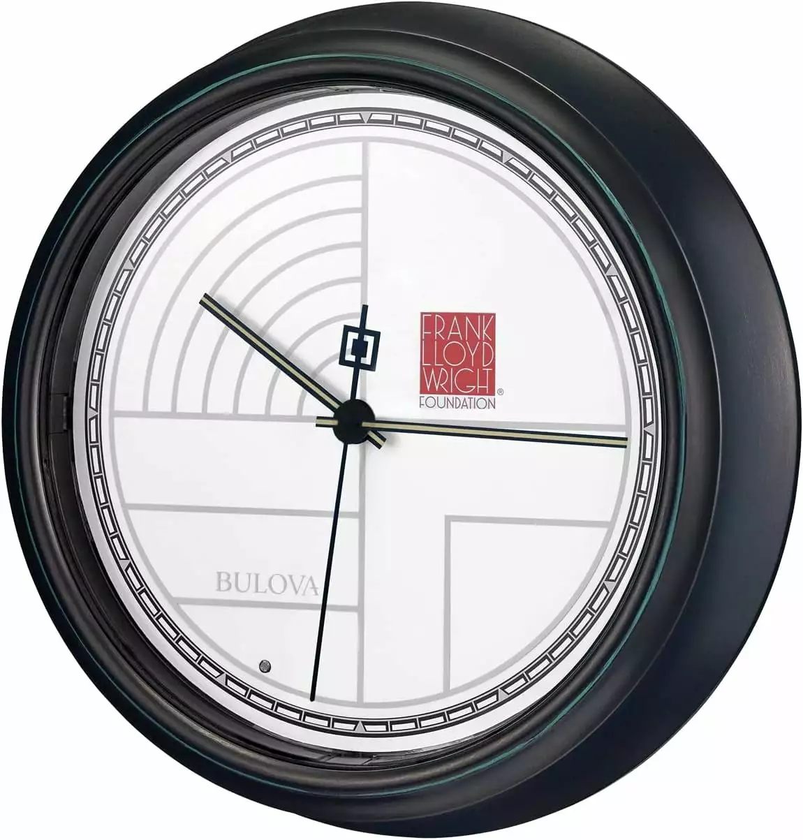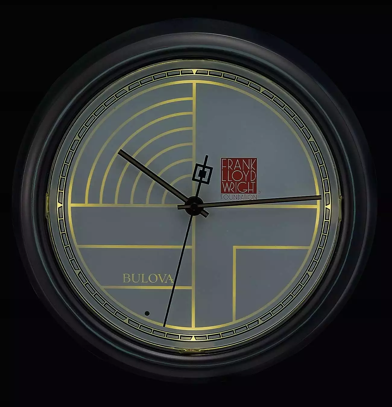 Bulova Clocks C4881 Liberty New Frank Lloyd Wright outdoor lighted dial design. Molded weatherproof case. finished in a rubbed bronze color. Gasketed protective glass lens. Automatic light sensor determines when the 4 white LED’s light up illumination of the reflective ink on the dial. Highlighting the December gifts design from a collection of Liberty magazine covers submitted in the 1920’s but never published as it was thought they were too avant-garde for the times. Great for any outdoor or high humidity location. Uses (1) AA battery for the silent sweep (no ticking) quartz movement and (4) D Batteries to power the lights. not included.