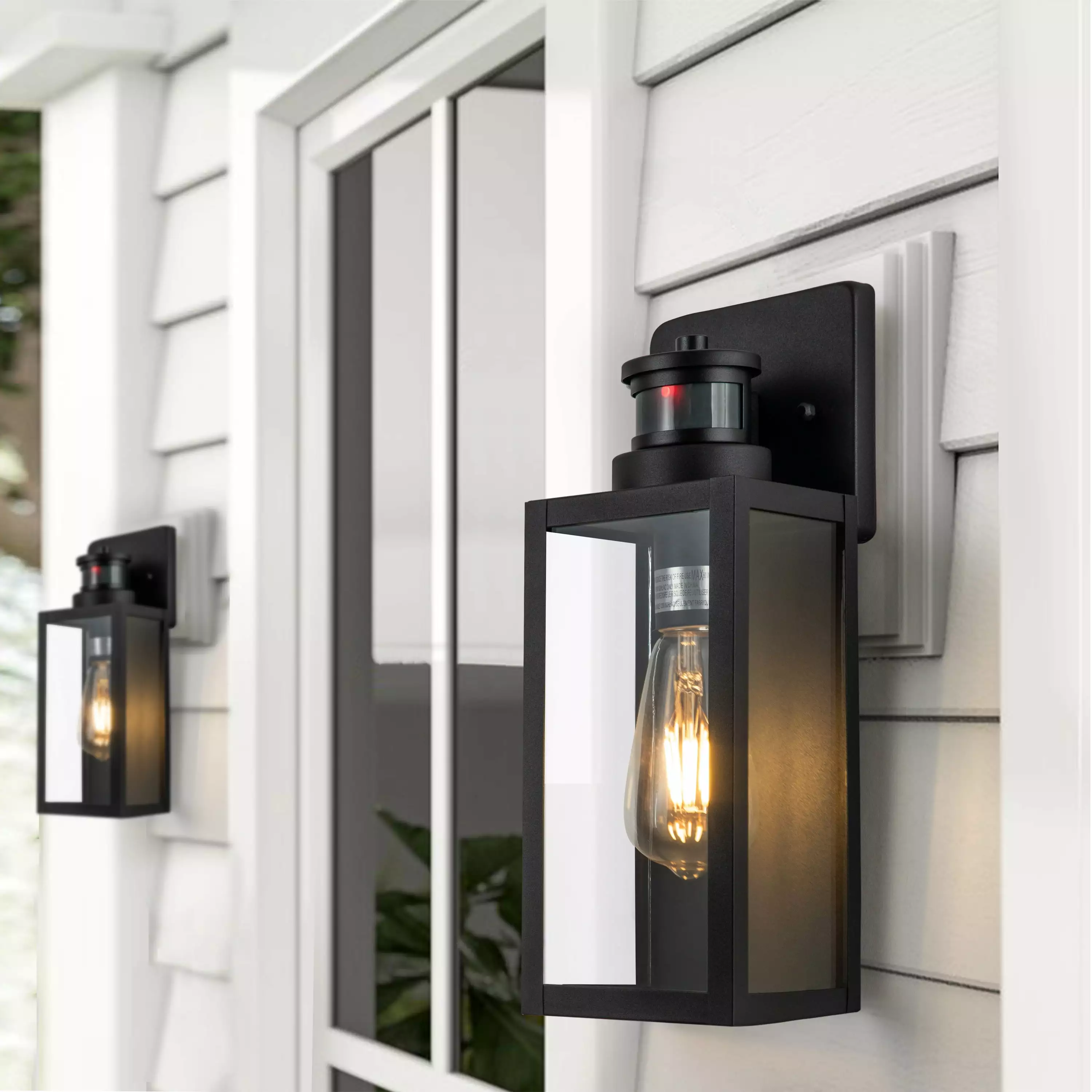 With its classic black finish and clear tempered glass panes. the minimalistic design of this wall sconce complements any decors. adding a touch of modern-inspired flair to the exterior of your home and making it the ideal piece for all your outdoor lighting needs. Constructed with advanced PIR motion technology and IC lighting sensor. You get convenience. security. and efficiency with this outdoor light fixture. Enjoy the comfort and convenience of continuous bright illumination during the early evening hours.