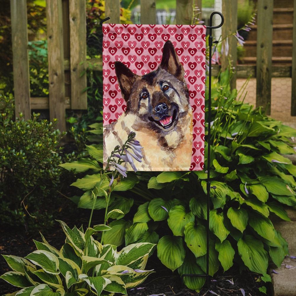 Carolines Treasures LH9173-FLAG-PARENT Norwegian Elkhound Hearts Love and Valentines Day Portrait Flag multicolor This design is available in both the garden size (small) and the house size (large).100% Polyester Durable Fabric.2 Ply Double Sided Quality Contruction.Garden Size Flag approximately 11 in x 15 1/2 inFlag is printed on both sides for accessible viewingSleeve Pole Top to fit and standard garden size flag stand