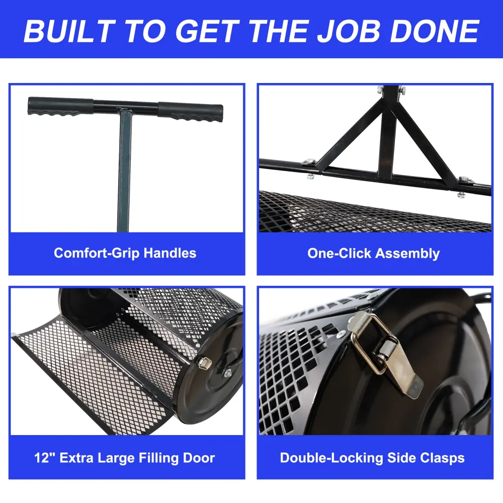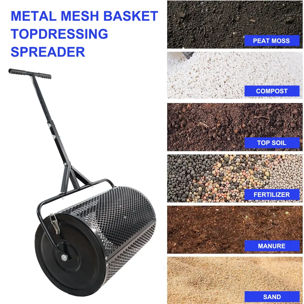 Compost Spreader Peat Moss Spreader with Upgrade T Shaped Handle for Planting Seeding Long lasting Featherweight Metallic Mesh Spreader for Lawn Garden Care Manure Spreaders (Black) Specification: Characteristics: Large capacity adjustable handle: Peat moss spreader Large capacity helps you save time, improve efficiency, eas