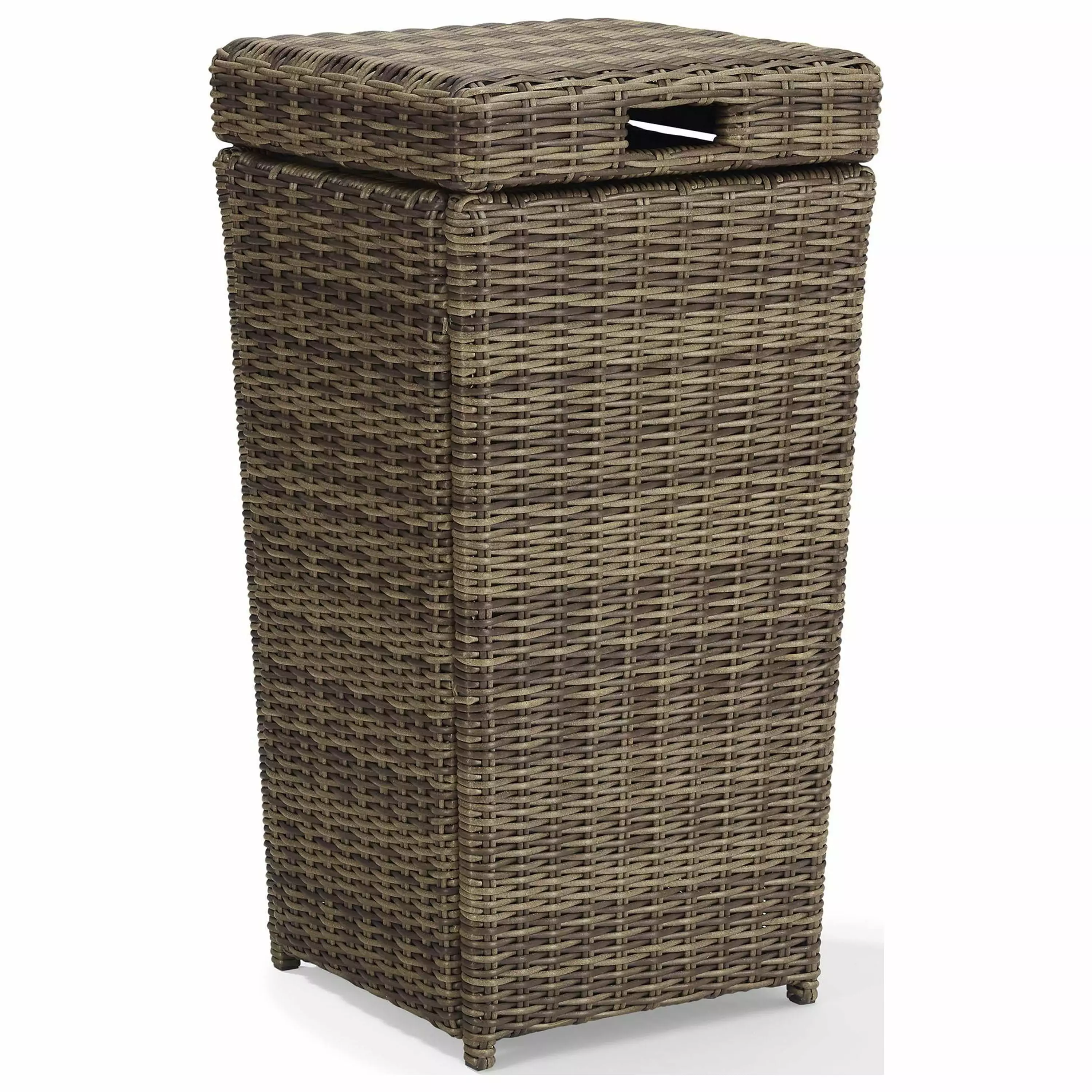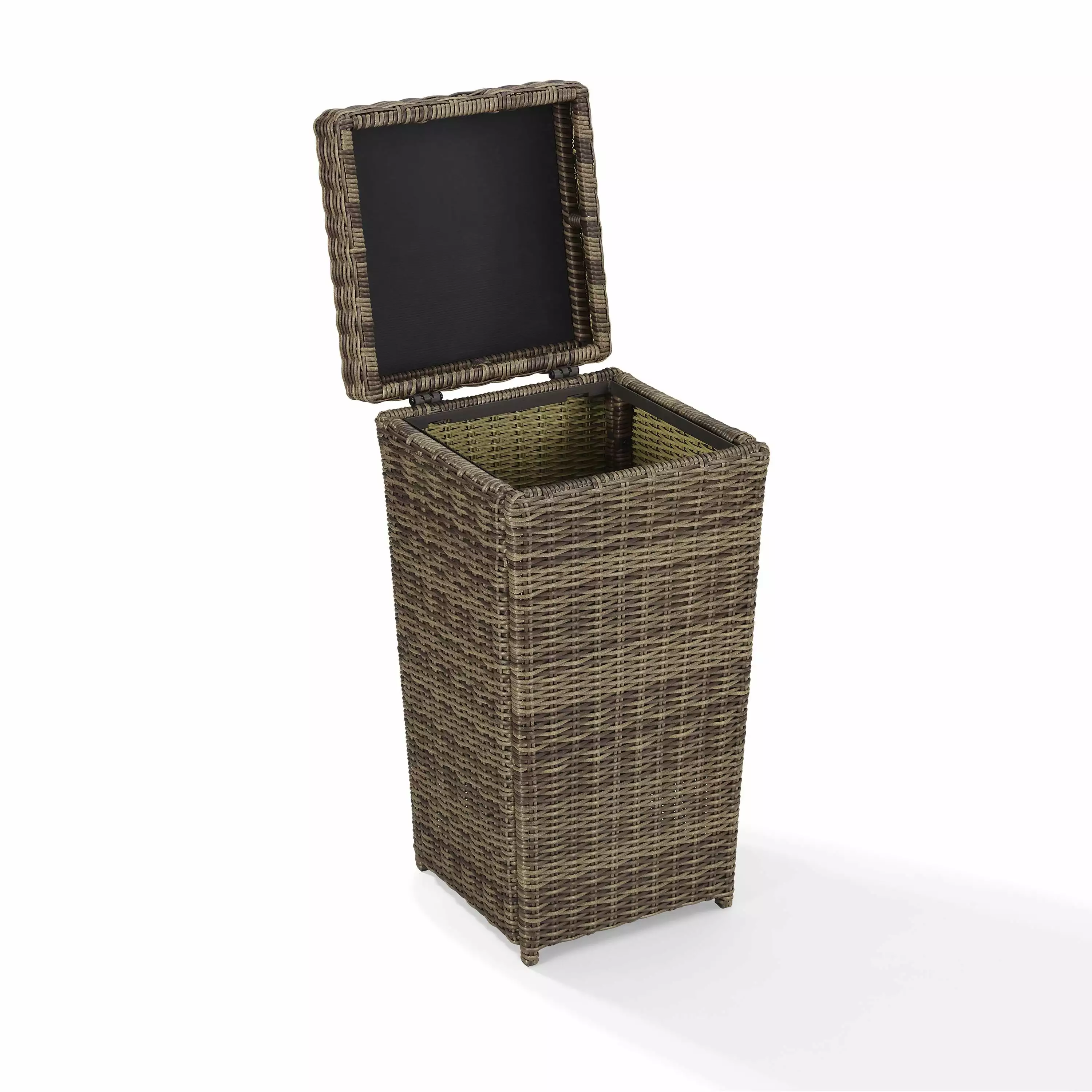 Avoid the mess of outdoor entertaining with the Bradenton trash can. The sturdy steel frame is woven over with UV-proof resin wicker. ensuring durability through the seasons. The interior frame will hold the garbage bag in place. while the removable lid makes transferring the bag simple.