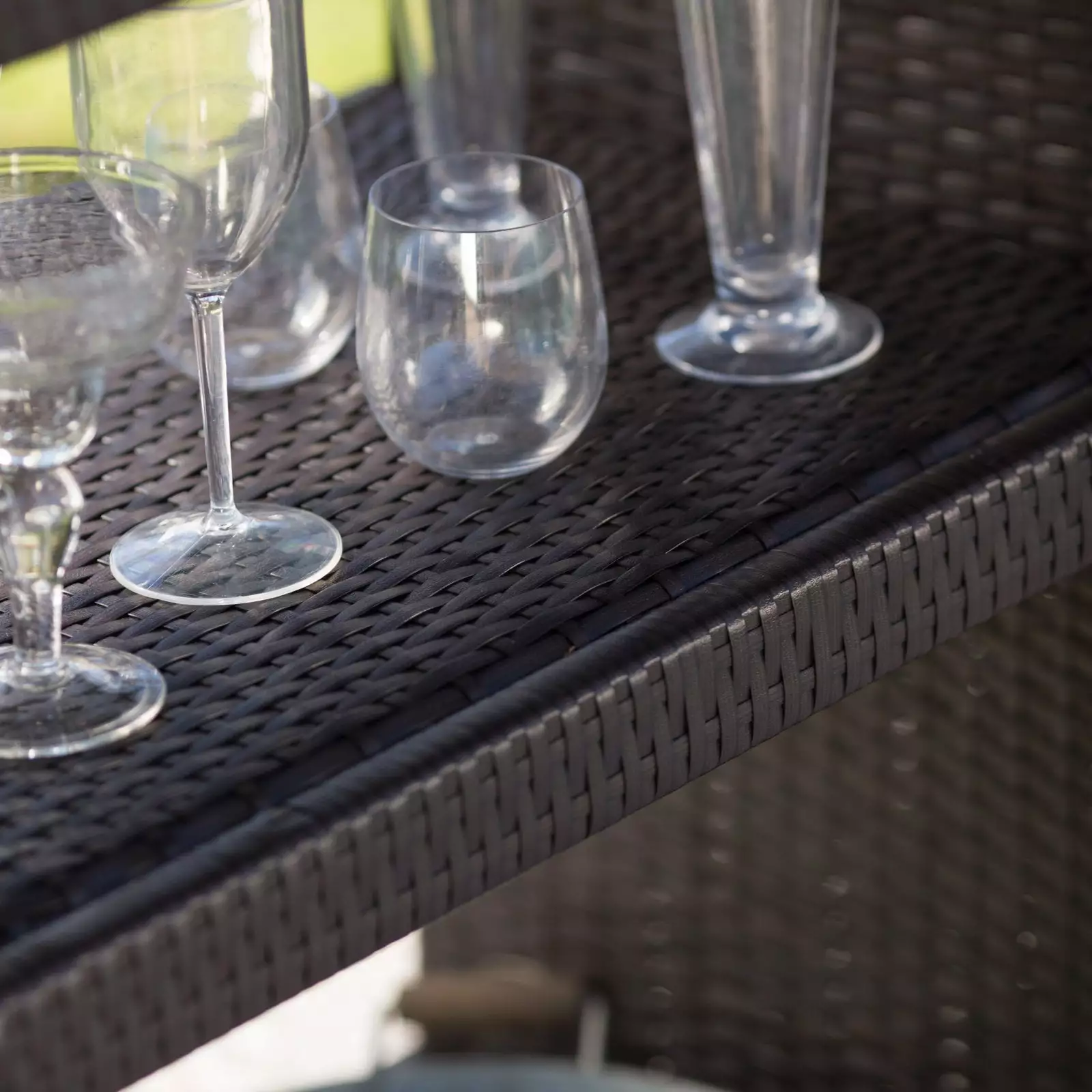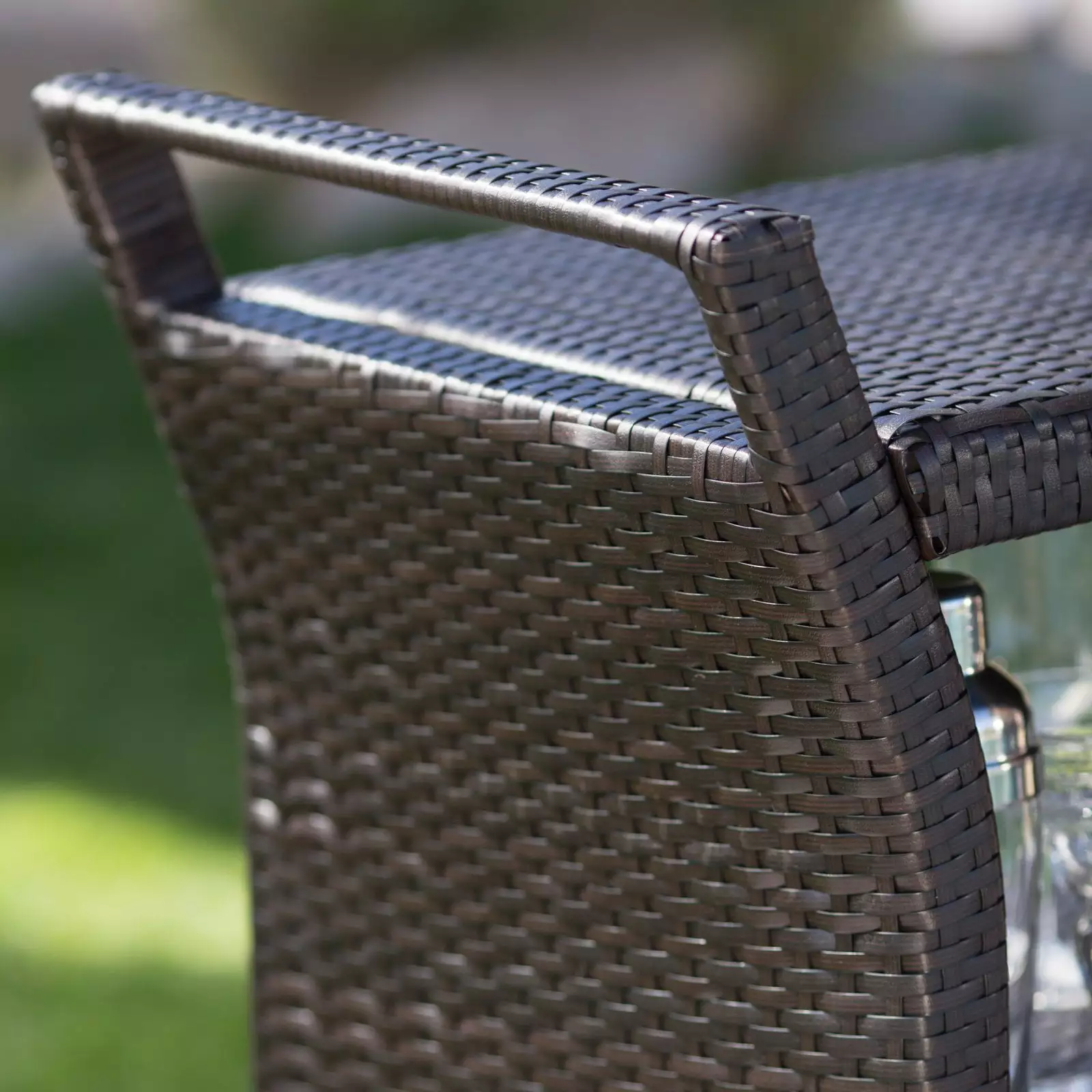 - Constructed of woven weather-resistant wicker over powder-coated steel