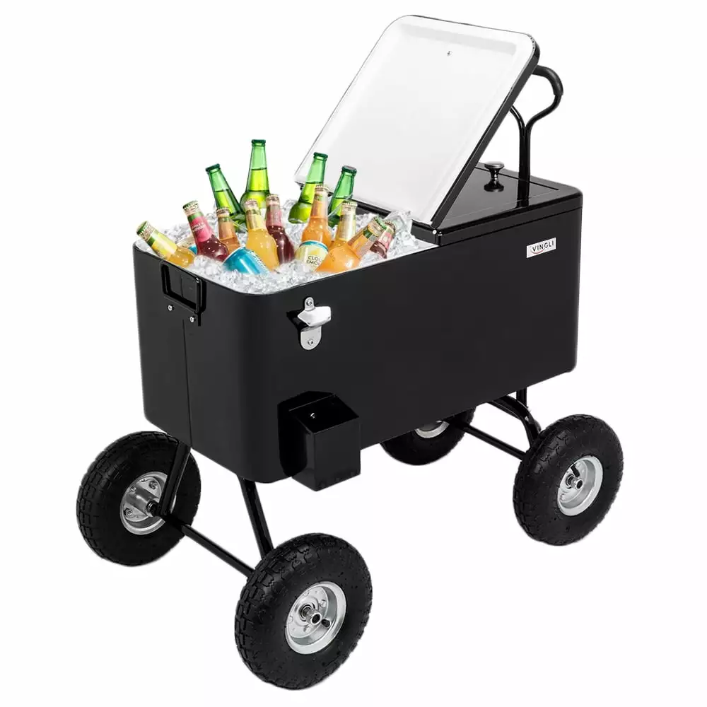 - Outdoor bar cart Wheeled cart offers rolling convenience to the poolside or patio