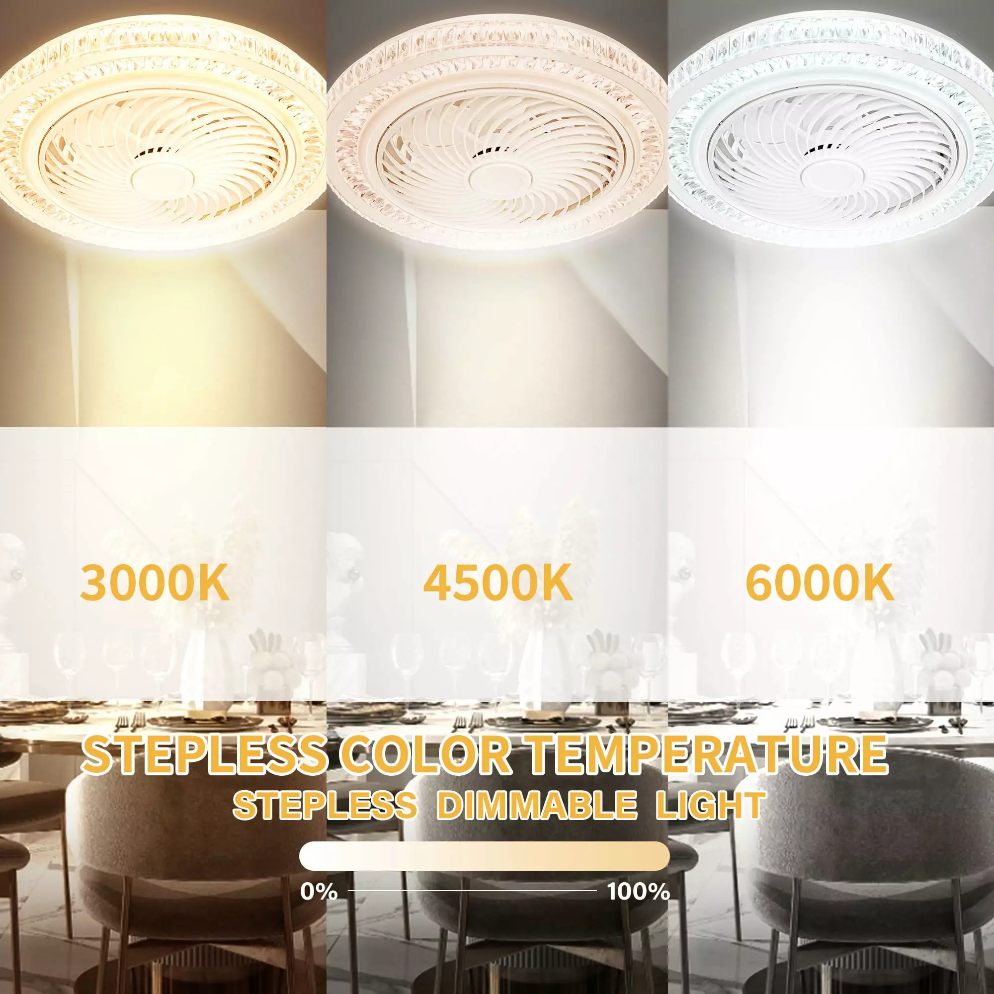 - MODERN SPARKLING DESIGN: Enhance your indoor spaces with an enclosed ceiling fan featuring crystal-like trims and durable ABS fan blades. adding a touch of elegance to your home or business.