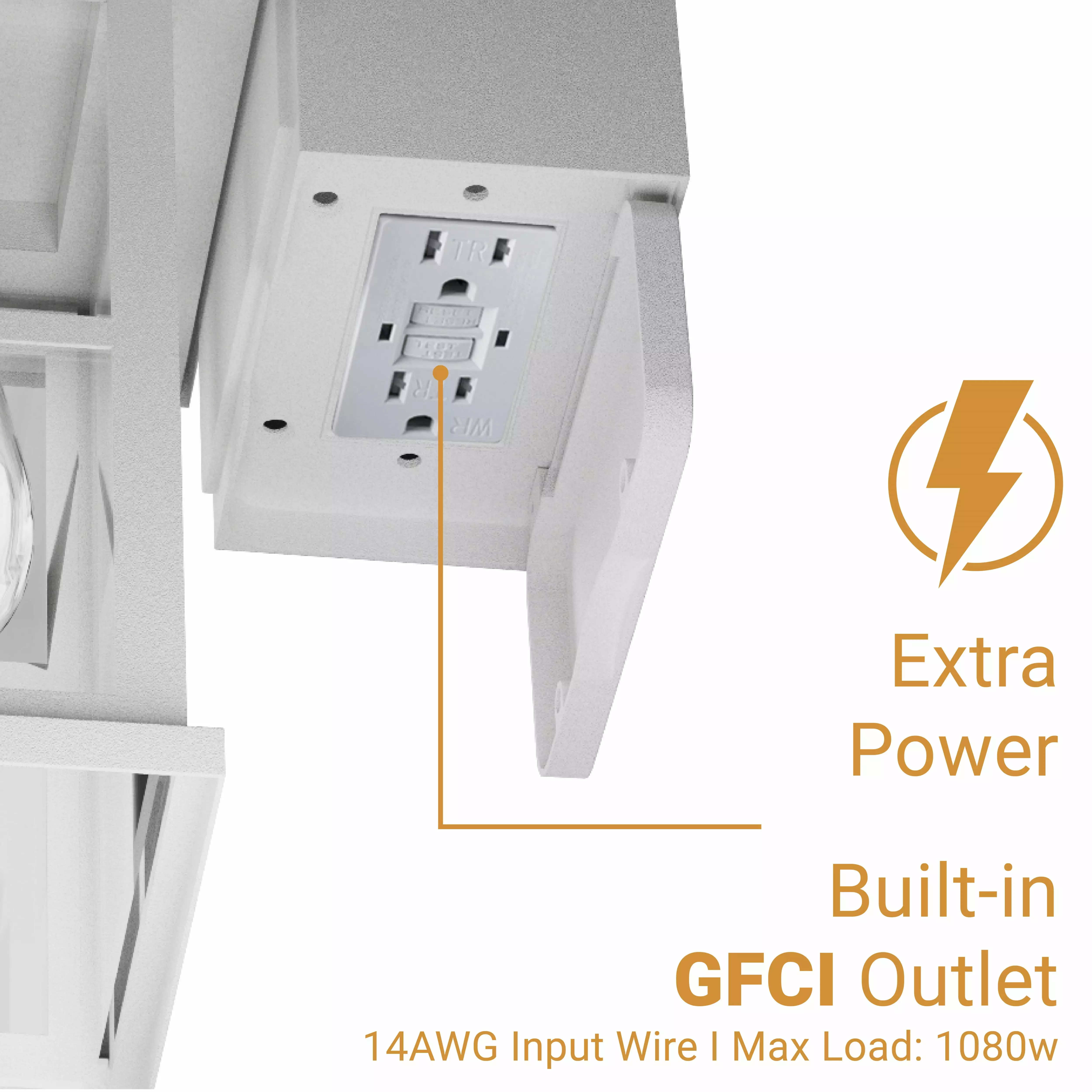 - BUILT-IN 2 GFCI OUTLET: GFCI (Ground Fault Interrupter) outlets will bring safety and convenience to your outdoor power supply. Easily protecte from power surges/short circuits/other electrical faults. Dual outlets fit two-prong and three-prong plugs. can be connected to lawn mowers. grills. cameras. string lights and other outdoor equipment at the same time. The downward design of the GFCI outlet can better protect the outlet from rain. (MAX power 15AWG. MAX load 1800W)
