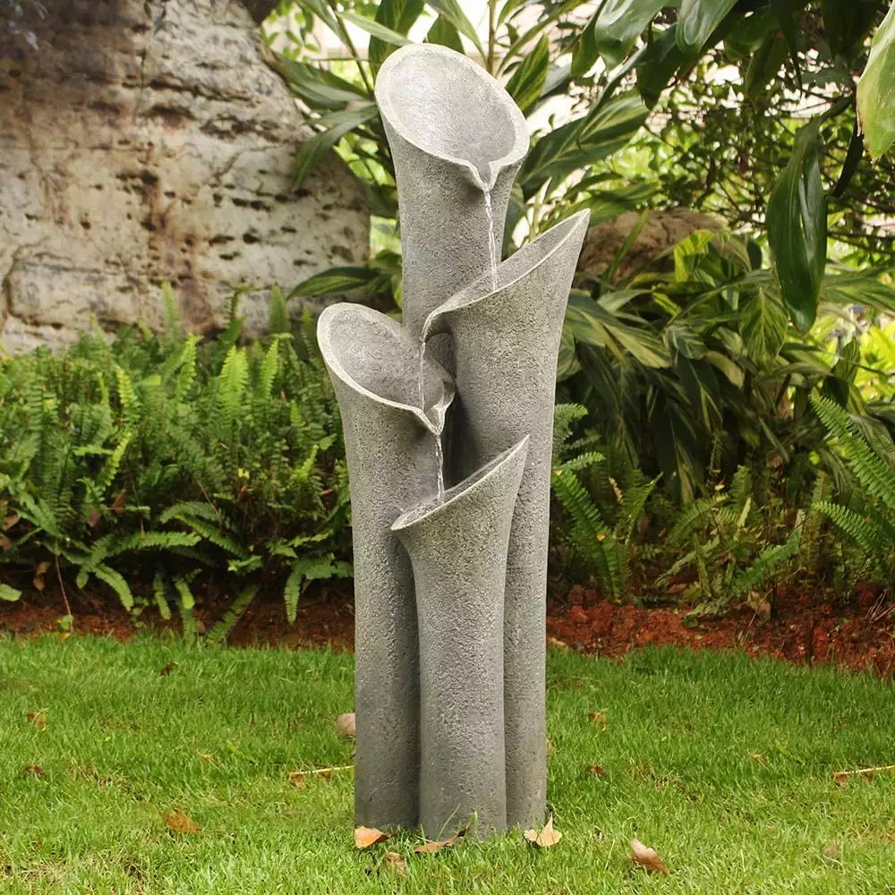 - This garden waterfall fountain features four tiers for water gently cascading down which create soothing water sound. Beautiful waterfall to add calming ambiance to your surroundings.