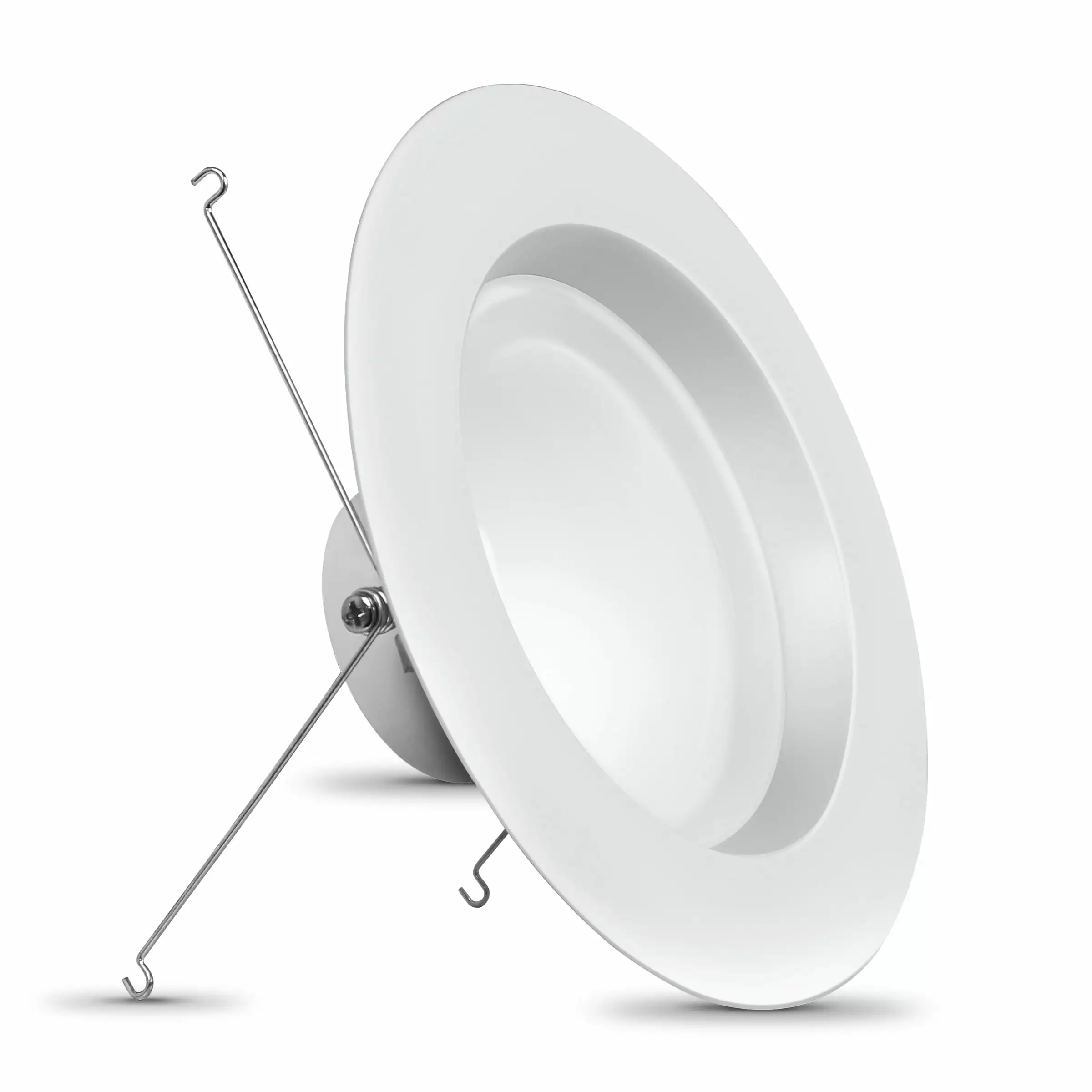 Upgrade your old. recessed downlights to advanced LED technology with Feit Electric LEDR56HO/6WYCA/4 color selectable recessed downlights four-pack. Ideal for larger spaces or high ceilings. High-output light is ideal for larger spaces or high ceilings. These color-selectable lights fit most 5-inch and 6-inch trim recessed can housings and produce a luminance of up to 1.290 lumens using only 14.3 watts – up to 93% less energy than an equivalent 120-watt incandescent light and can last up to 45.7 years. Preset before installation or with a wall switch between soft white. bright white. neutral white. cool white. and daylight. Enhance 90+ CRI LED light makes colors vibrant and skin tones look more natural. all while saving energy and lasting for decades. Each Energy Star-qualified kit comes with a standard base adapter and a pre-mounted trim. Dial it up. dial it down to set the mood with fully dimmable customizable lighting. These recessed downlights are California Energy Commission (CEC) Title 20 compliant.