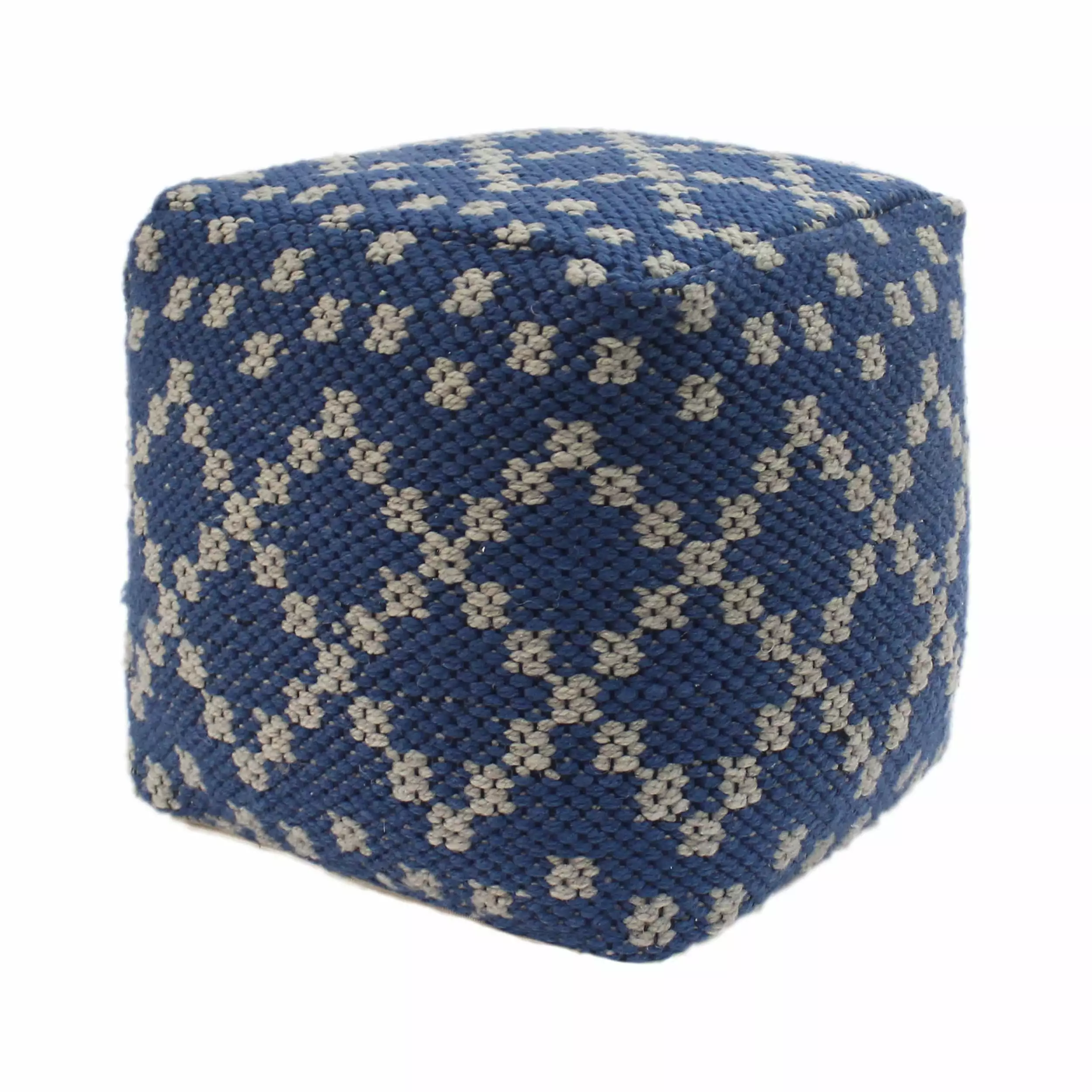 Noble Houtilize Corinthian Polystyrene Fabric Cube Pouf in Blue and White