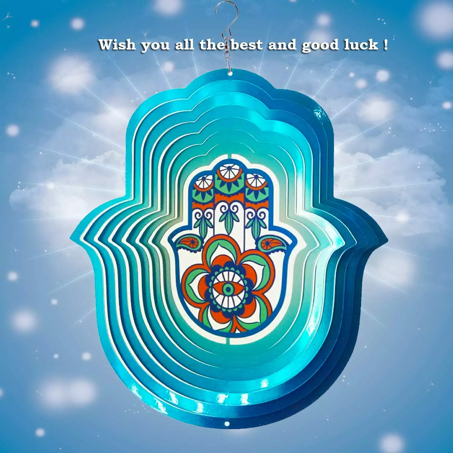FONMY Mandala Hamsa Lucky Hand 12 inch 3D Stainless Steel Wind Spinner