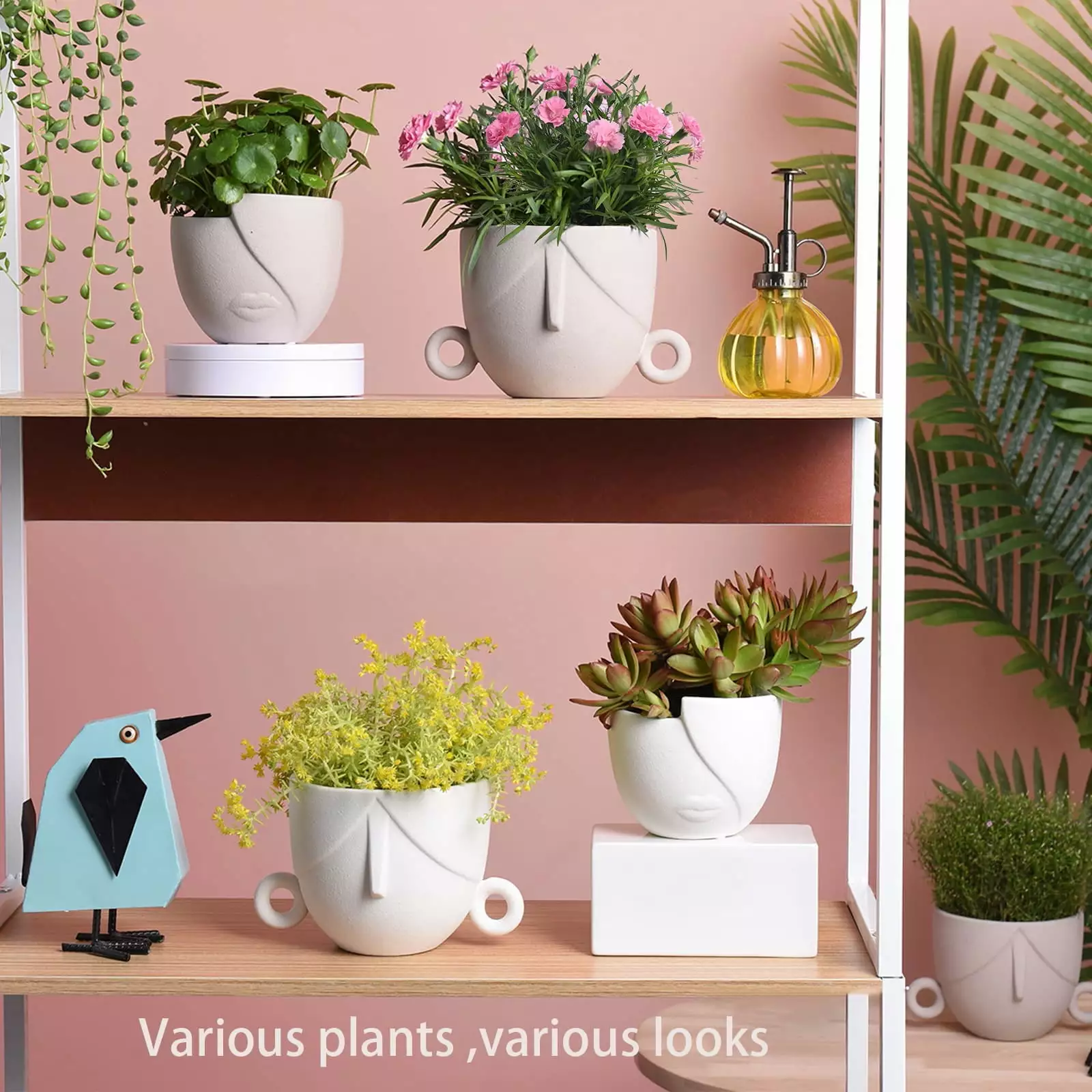 | Size | ??2 Pack Indoor Planter Pots Size??: The set includes two ceramic face planters. The larger one measures 5.4 in diameter and 4.7 in height. while the smaller one measures 4.7 in diameter and 3.9 in height. (Plants not included) |