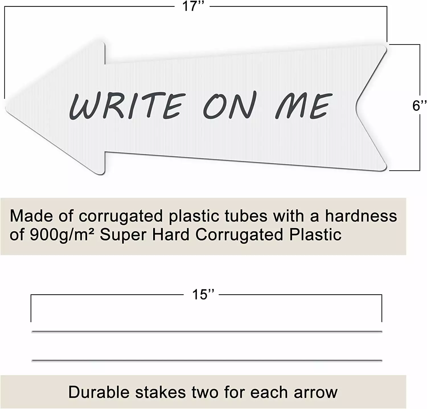 - DIY Your Yard Signs: The white sign allows you to customize it on it to your liking. as garage sales. open house. estate sale. parties. wedding and guidepost decorations.
