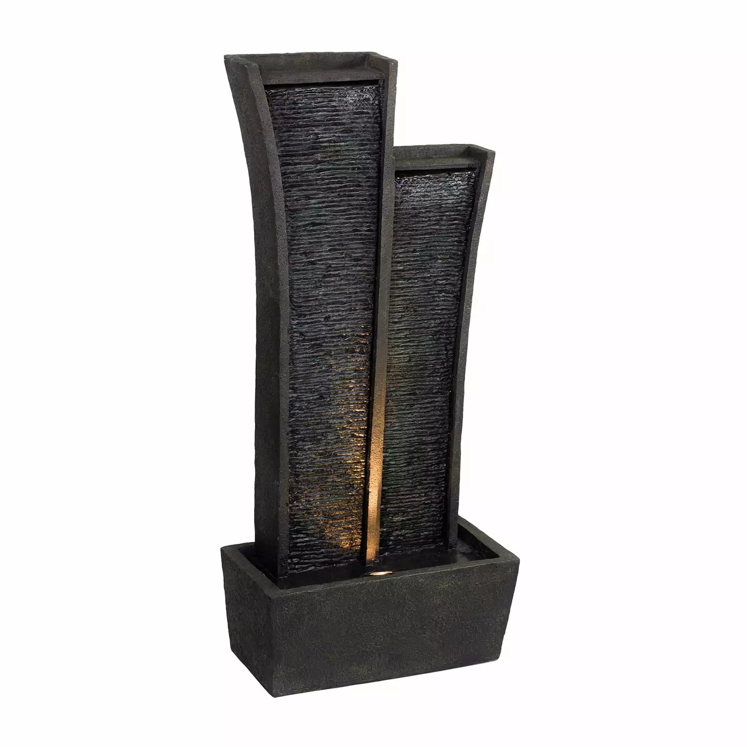 Create the ultimate Zen oasis with a decorative water fountain from Hanover. Designed for both indoor and outdoor use. place one in your sunroom. garden. courtyard. front yard. or backyard. Our modern art water fountain features three tiers with warm white LED lights for a gentle glow. especially nice in the evening. Enjoy your morning coffee or sip your tea to the soothing sound of cascading water. This waterfall fountain will be the ideal centerpiece for your beautiful home to ease your stress so you can relax. A recirculating water pump with adjustable water flow continuously recycles water from an internal reservoir located in the back. Our durable garden fountains are constructed with weather-resistant polyresin then hand-finished for natural beauty to enhance your landscape or interior design ÿ perfect for your solarium. porch. deck. balcony. patio. or lawn.