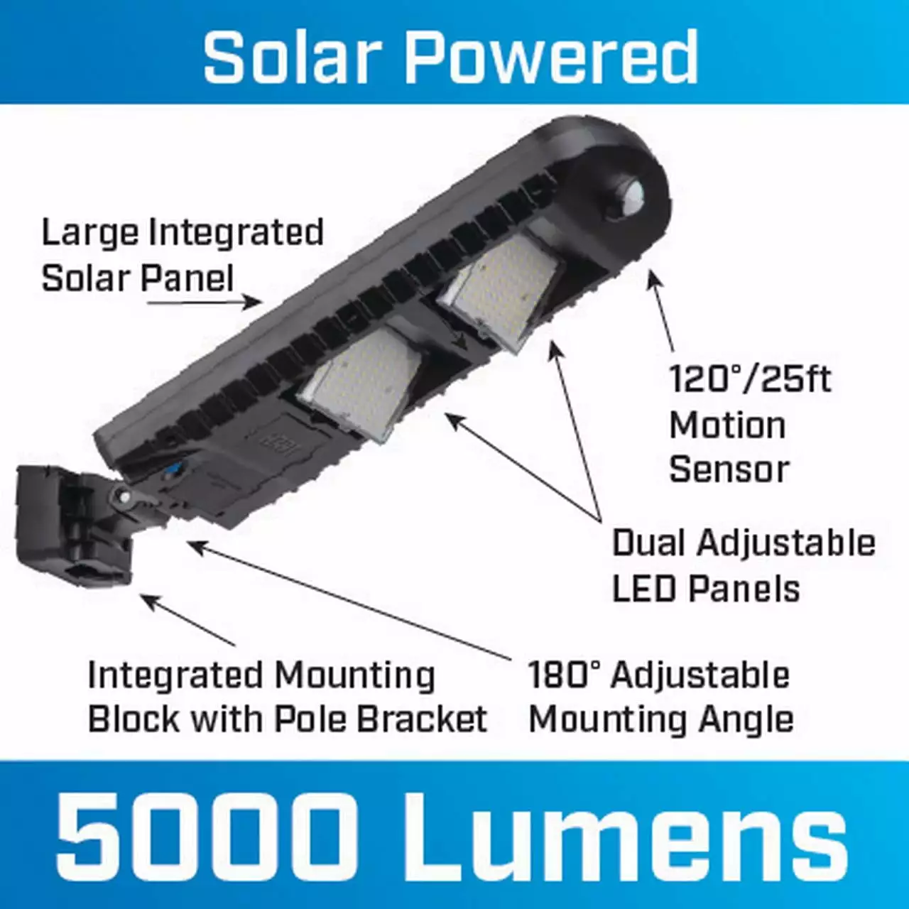 HART Solar Motion Street and Area Light. Dusk to Dawn. Wall. or Pole Mount. Black. 5.000 Lumens