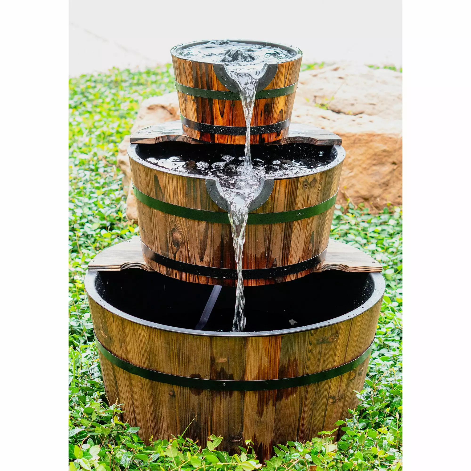 - SOLID. FIR WOOD BARRELS: Crafted from genuine fir wood. this fountain is not just a water feature; it’s the perfect art piece to add to your outdoor decorations.