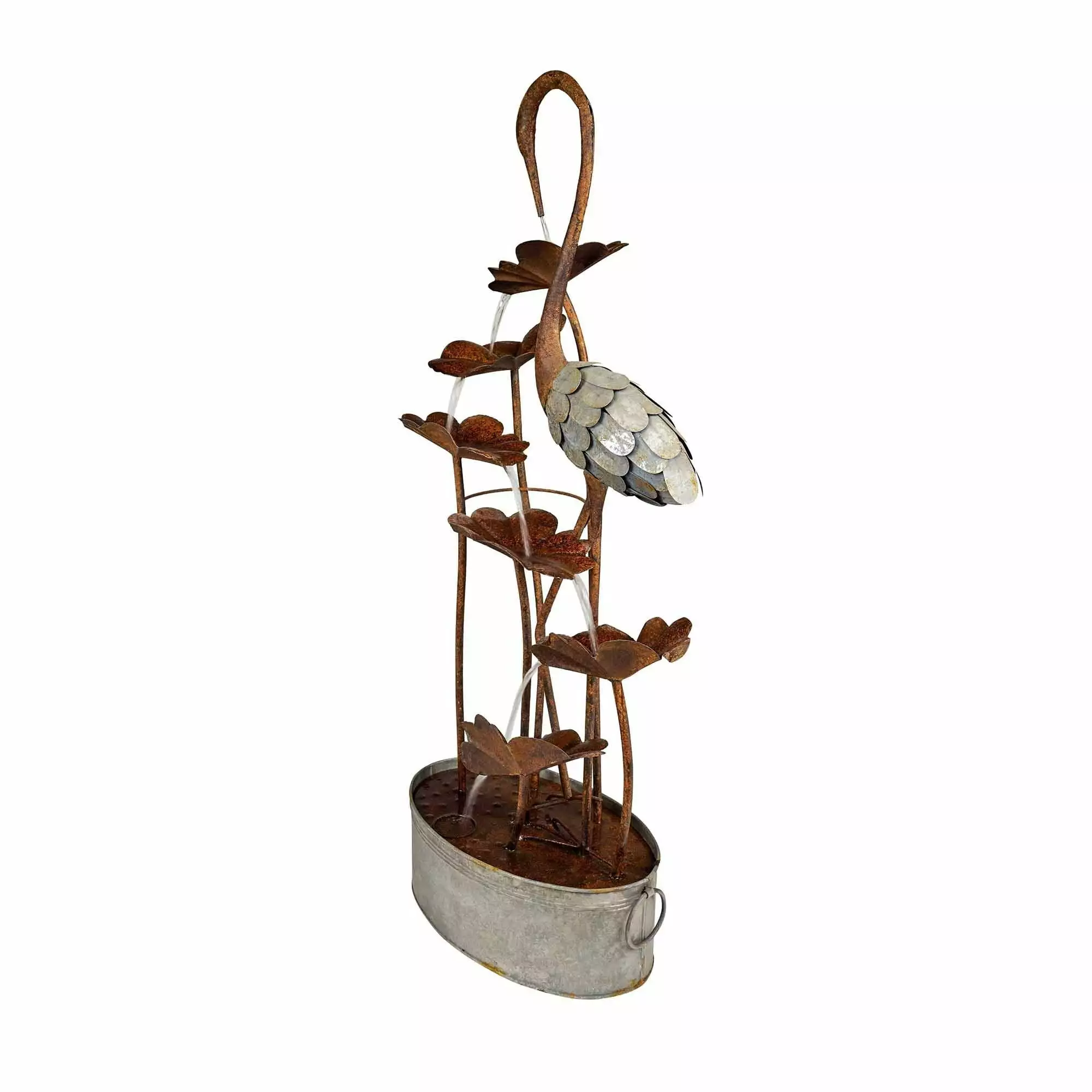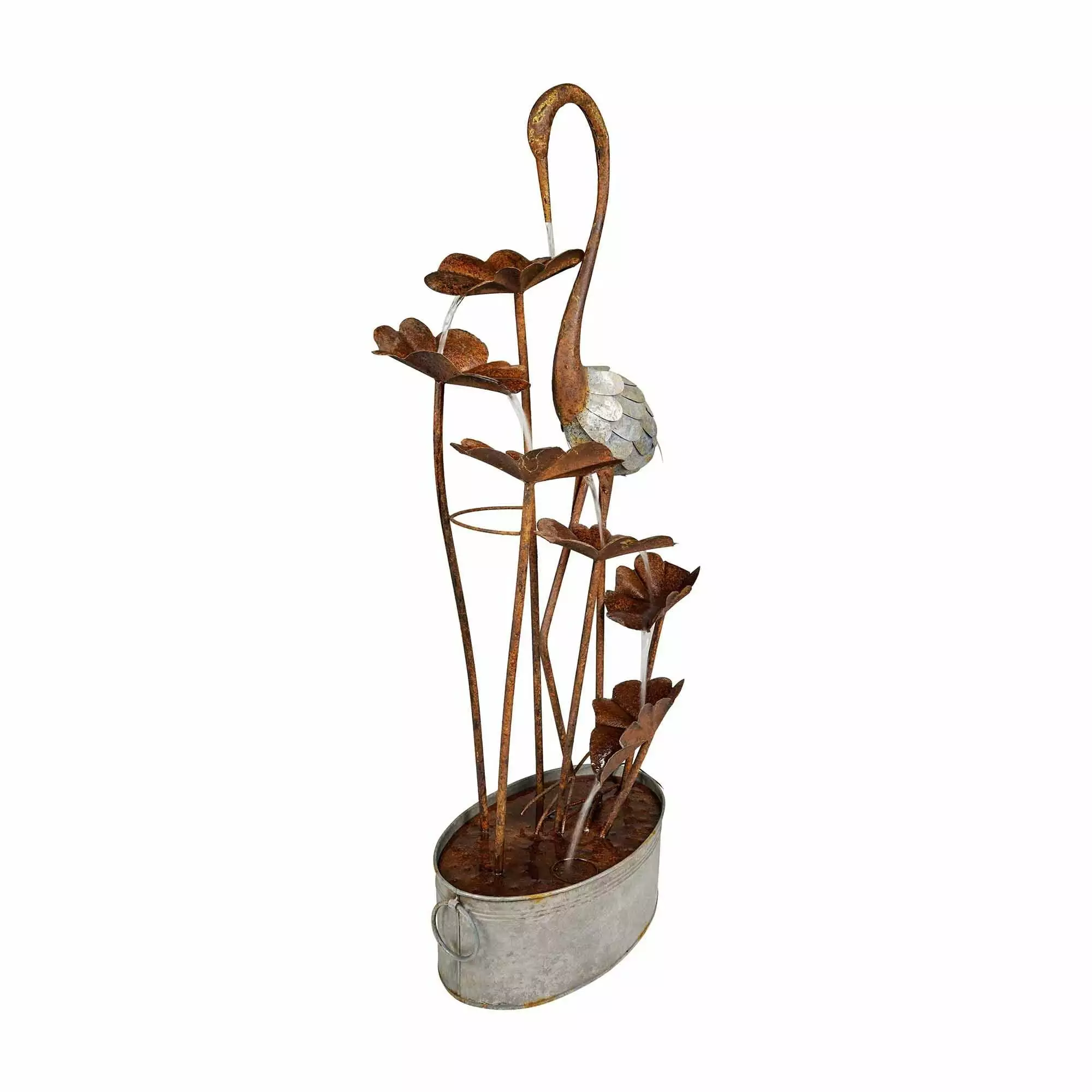 Hi-Line Gift Ltd. Metal Crane With Leaves In Pail Fountain