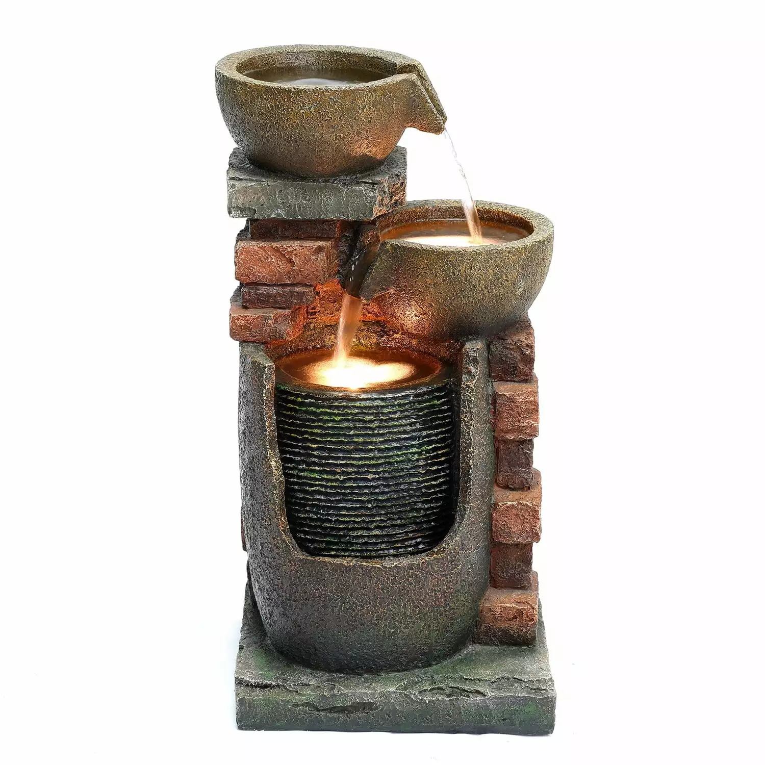 LuxenHome 23 H Bowls and Bricks Resin Outdoor Fountain with LED Lights