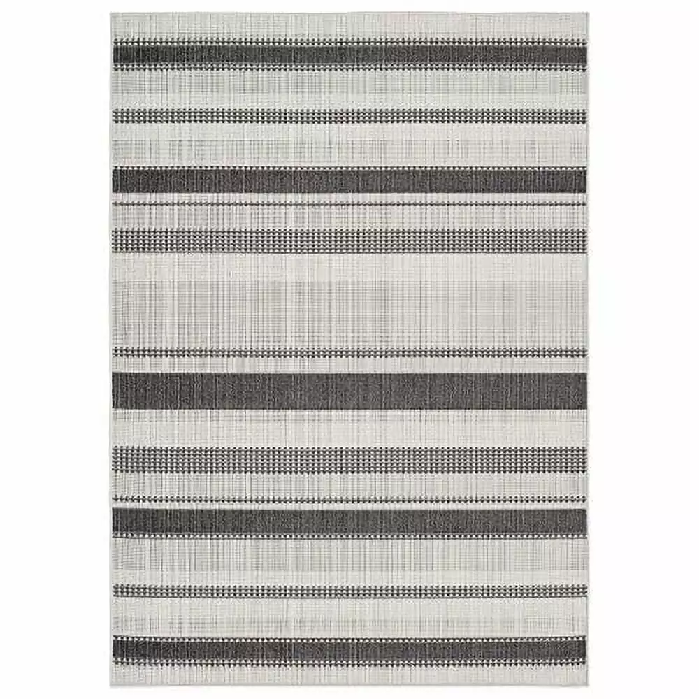Home Dynamix Tripoli Mateo Modern Striped Indoor/Outdoor Area Rug. Charcoal/Cream. 5’3×7’3