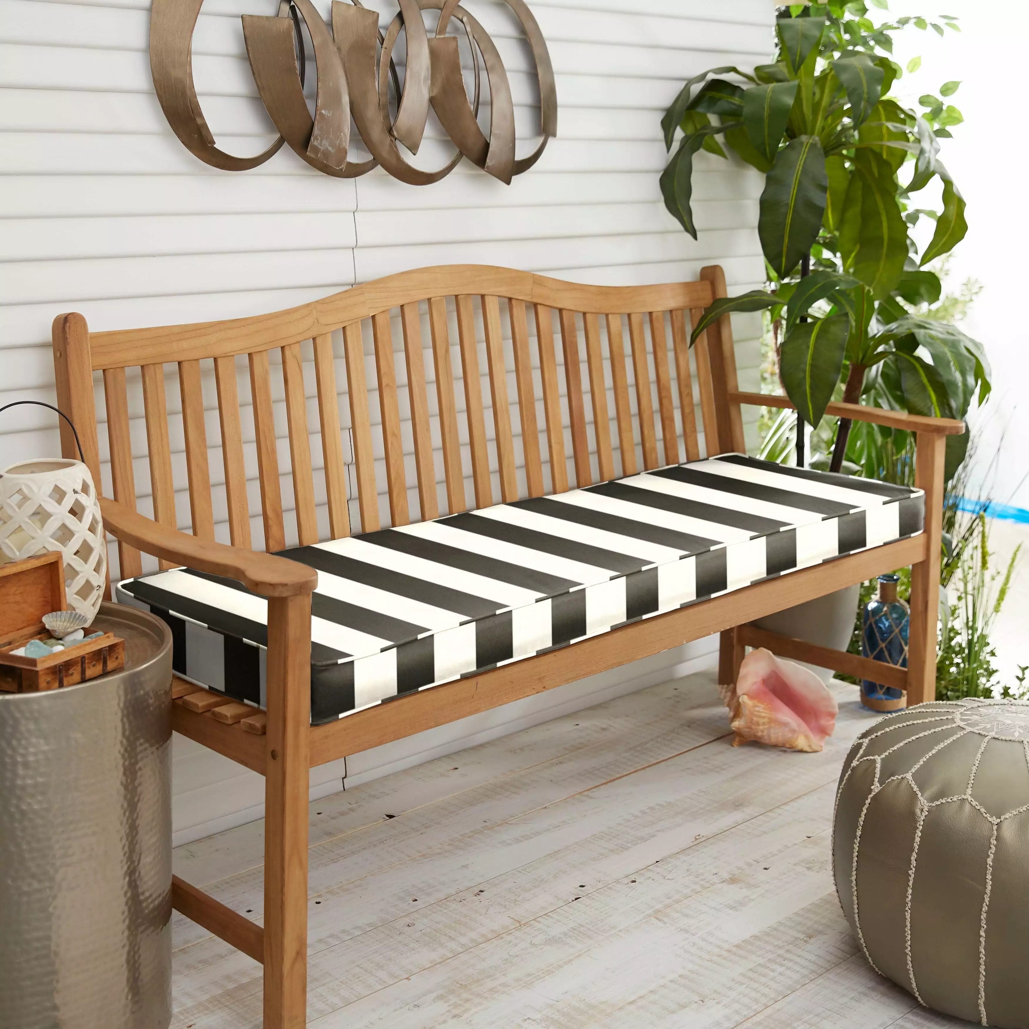 Make a bold statement and classic look to your outdoor seating furniture with this black and white bench cushion from Sunbrella. This striped bench cushion is decorative and attractive to evoke stand-out quality in any setting. The 100 percent recycled polyester fiber fill ensures a soft and support design. With a durable exterior. this cushion won’t be damaged or faded by long-term sun exposure.