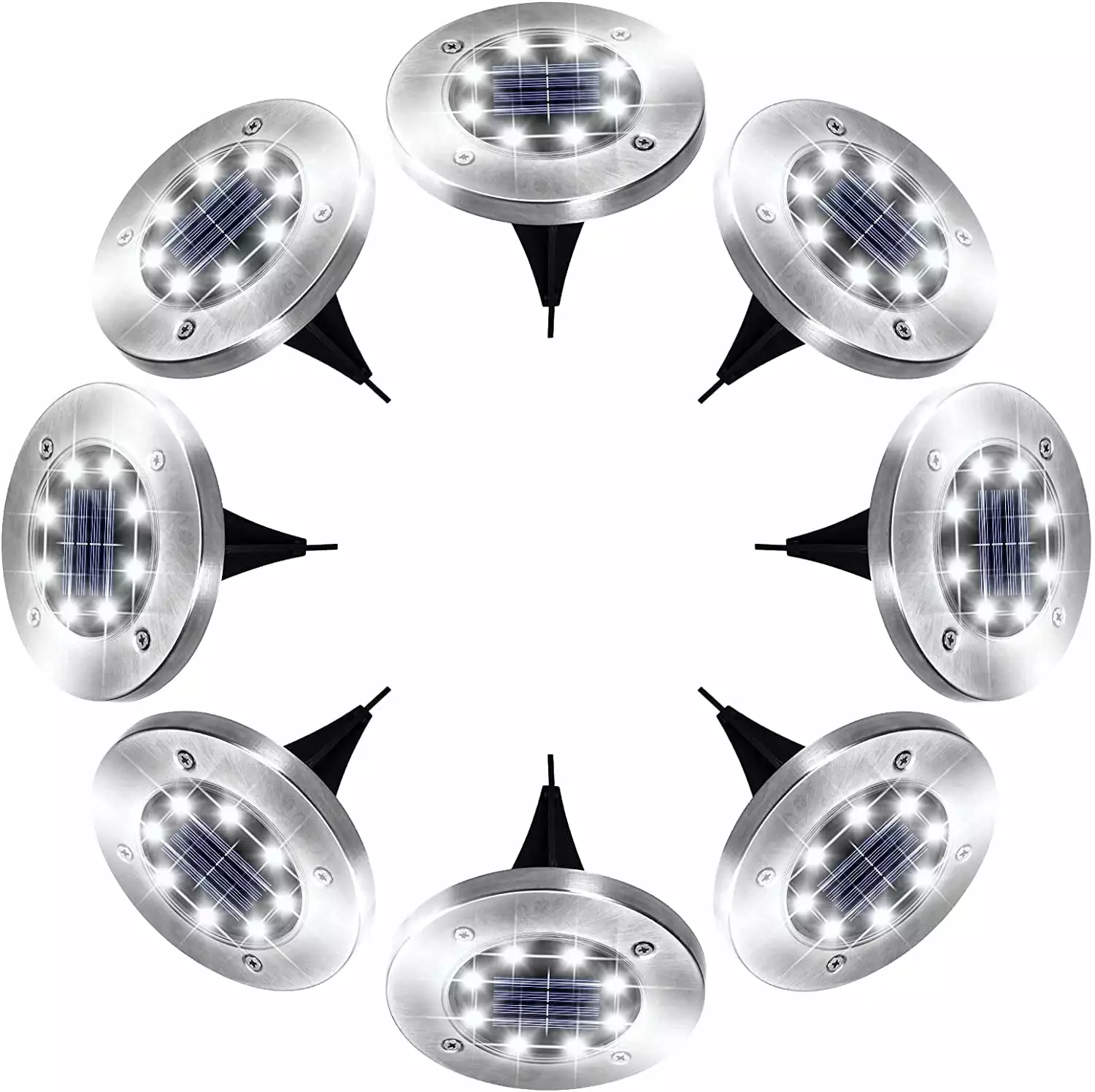 RNKR Solar Ground Lights.8 LED Disk Lights Solar Powered Waterproof Garden Pathway Outdoor in-Ground Lights with Light Sensor for Garden Driveway Lawn Pathway Yard Pool Step and Walkway