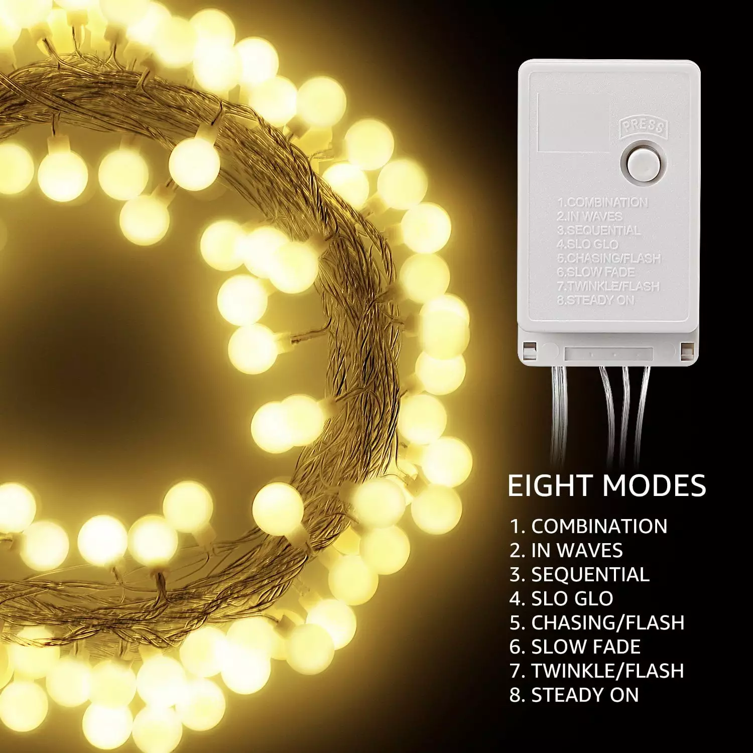 TorchStar 33ft 100 LEDs Globe String Light Kit. 8 Modes Indoor & Outdoor Decorative Lighting. Warm White. PC Coated Copper Wires. for Holiday. Christmas. Thanksgiving. Party. Wedding
