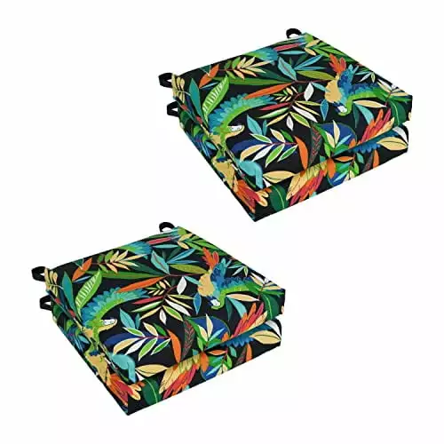 Add a splash of vibrant color and radiant style to your outdoor furnishings with these outdoor chair cushions. These cushions feature a classic chair cushion style and are available in a wide variety of striking patterns of premium spun polyester outdoor fabric.