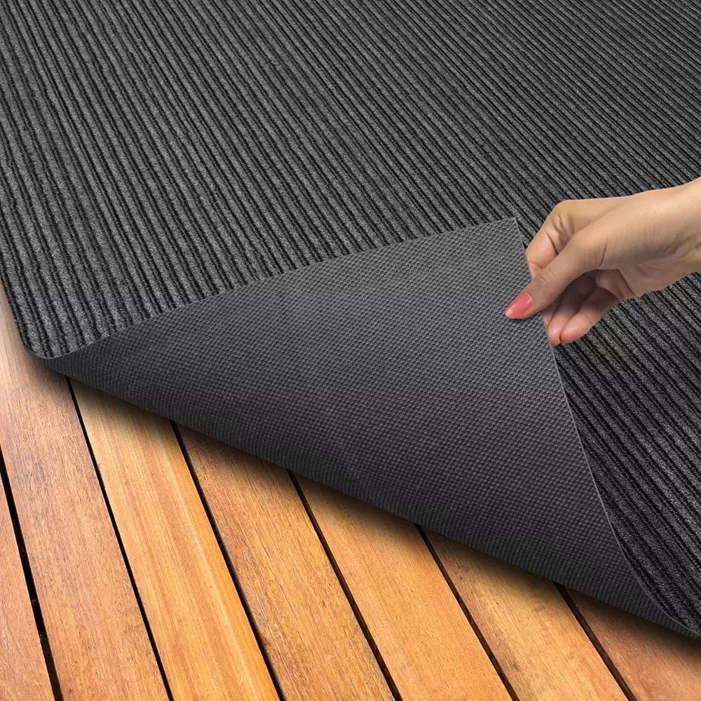 Indoor/Outdoor Double-Ribbed Carpet with Skid-Resistant Rubber Backing – Smokey Black 6′ x 10′