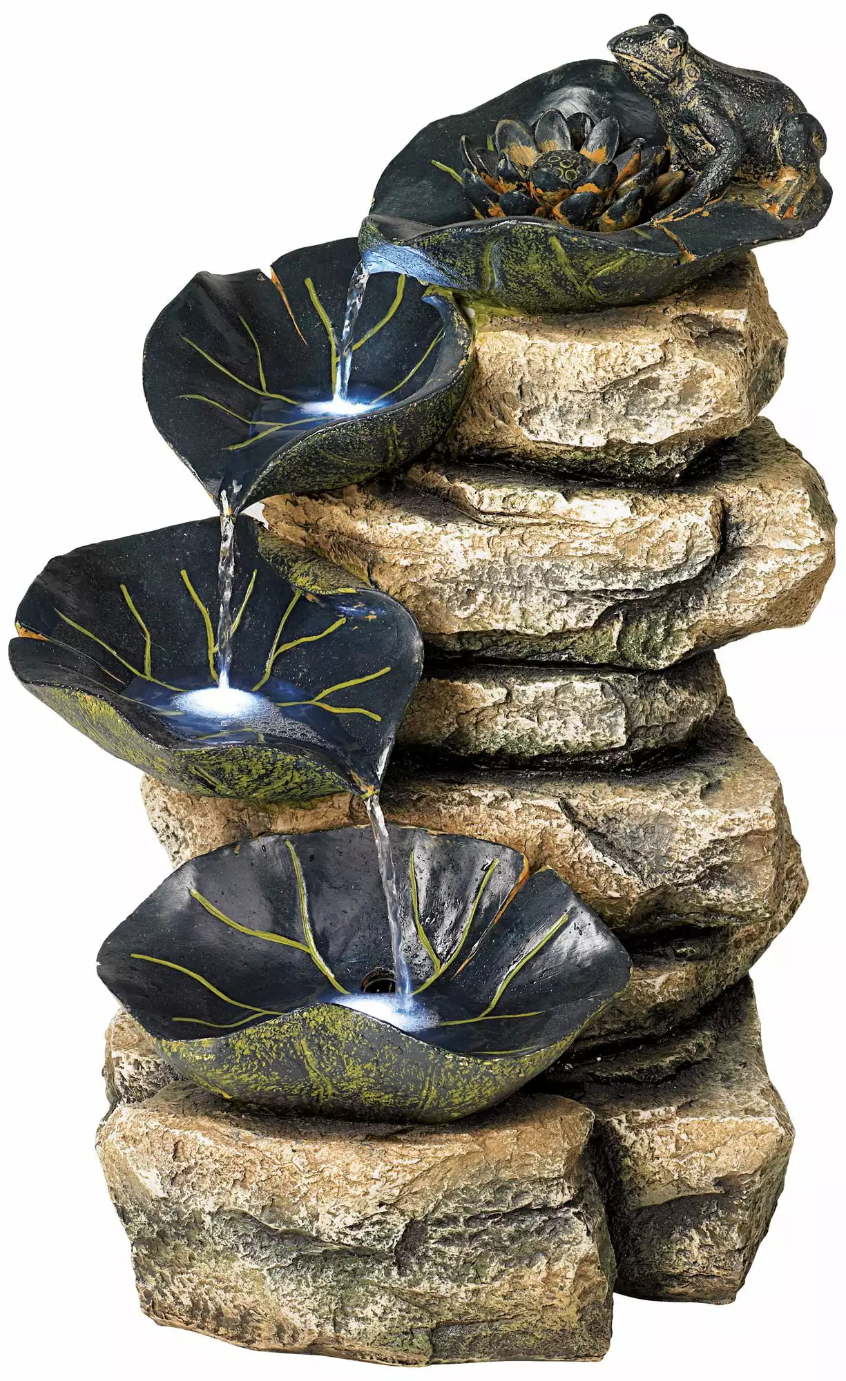 John Timberland Frog and Four Lily Pad Rustic Cascading Outdoor Floor Water Fountain with LED Light 21 for Yard Garden Patio Home Deck Porch Exterior