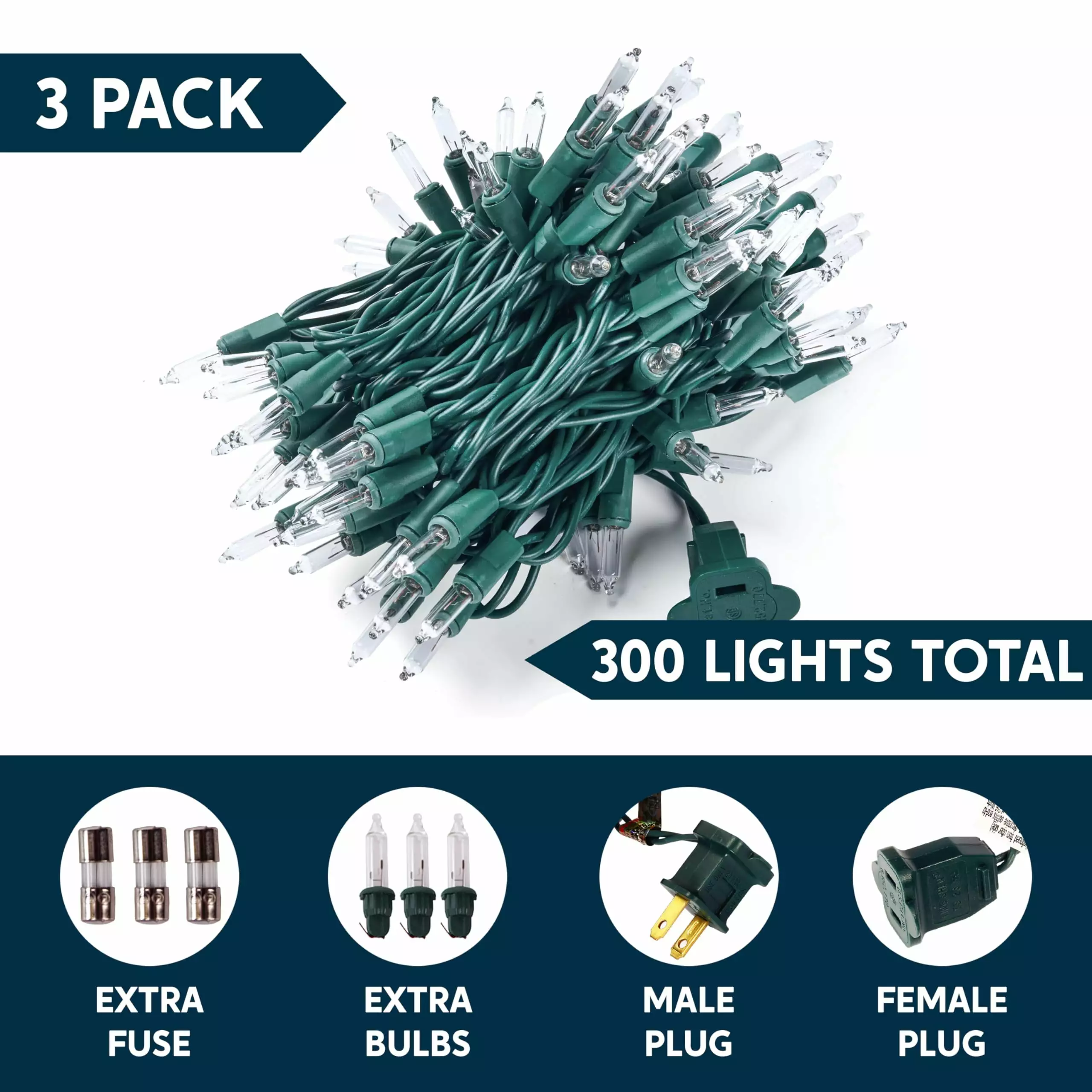 Joiedomi Christmas Lights Outdoor.300(3×100) Counts 67.5ft Clear White Christmas Lights Waterproof.Bright Green Wire String Lights Indoor Holiday Houtilize.Small Xmas Decorative Lights for Tree
