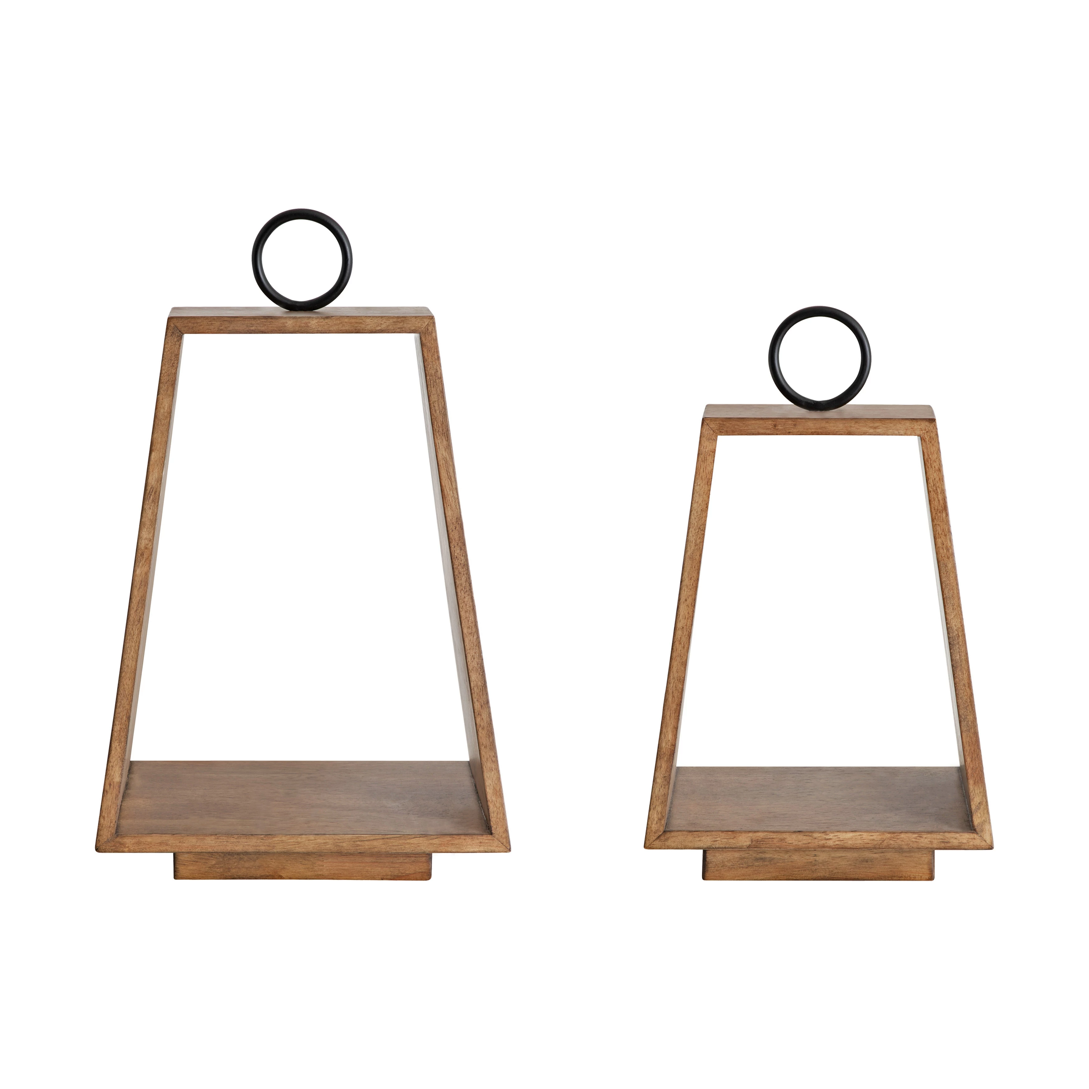 Create a minimal display that takes inspiration from farmhouse decor with the modern Stillright candle holders from Kate and Laurel. This staggered set of candle holders has a minimalist. geometric design with a warm wood finish for a look that combines the quality of farmhouse craftsmanship with the simple aesthetic of modern decor. This set is made with a solid rubberwood construction for a durable style staple that will last for years. Each Stillright candle holder features a metal ring to give it a classic. interesting lantern look. Feature this beautiful set of candle holders in your modern farmhouse living room. bedroom. entryway. bathroom. dining room. or kitchen. They’d make breathtaking centerpieces for your next dinner party or event. too. with enough space to hold candles. flowers. and cute little decor pieces. Display these candle holders together or utilize them throughout your home for a unified decor theme. These lantern candle holders are also easy to assemble. with simple. clear instructions that are only a couple steps.
