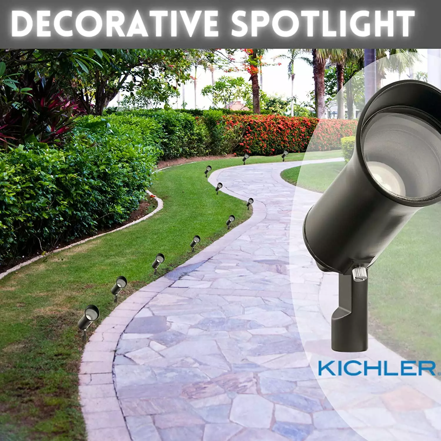 Kichler Showscape Collection #28311; 3-Watt (25 W Equivalent) MR 11 Spot 30° Spread Low Voltage Plug-in LED Spot Light Olde Bronze for Walkway. Garden. Patio. Hotel. Residential. Commercial (4 Pack) Olde bronze finish landscape spotlight provides light where you want it All-weather aluminum construction with sealed dust-proof Bulb resists water pressure from irrigation systems Includes 30-in wire leads to make connections easily All mounting hardware and detailed instructions are included for an easy installation