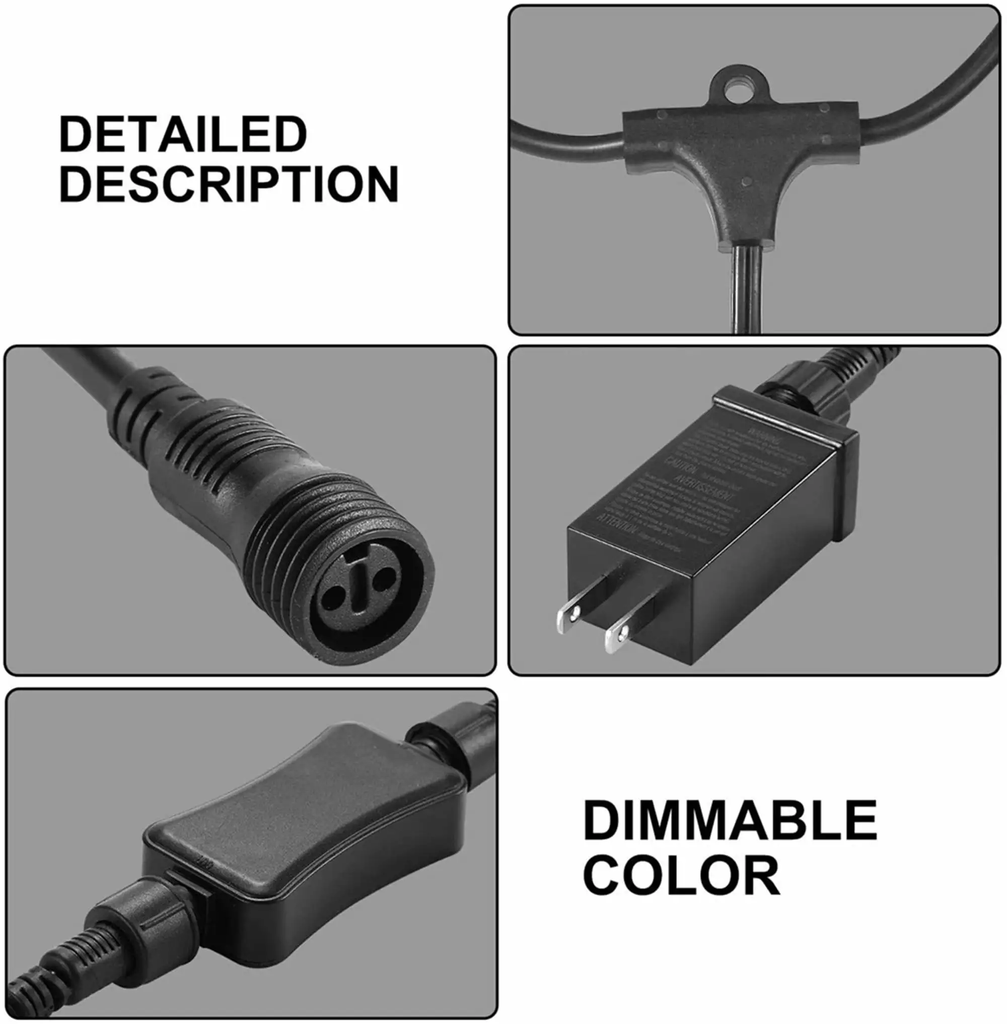 ??Dimmable. Color Changing String Lights Meet All Season Need??Select your favorite light color from red. green. blue. WARM WHITE. yellow. cyan. purple. orange; adjust the mode from fade. jump. auto. flash; control the speed of color changing or adjust the brightness of the bulb just by a simple press on the REMOTE. Conveniently choose warm white for daily decor or vibrant colors for specific occasion; never have to take down your outdoor holiday lights again!