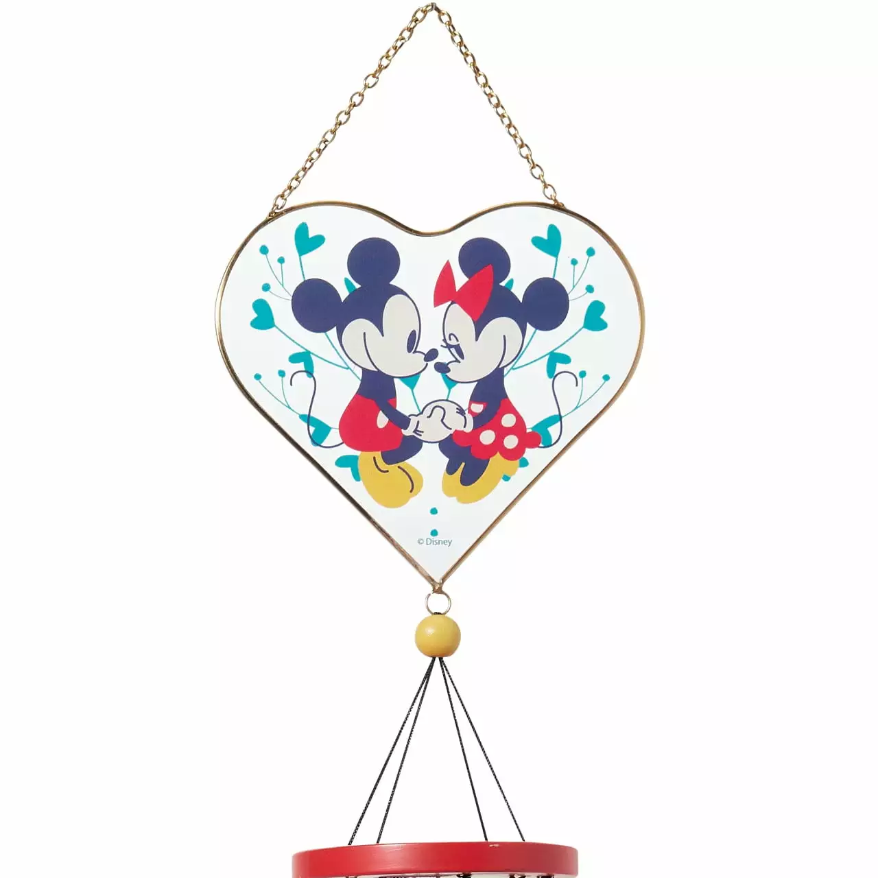 Add a little bit of color and sound to your garden with the Disney Garden Collection from Enesco. Mickey and Minnie sit in a lovely heart shape above metallic gold windchimes with a heart shaped sail. Perfect for any garden.