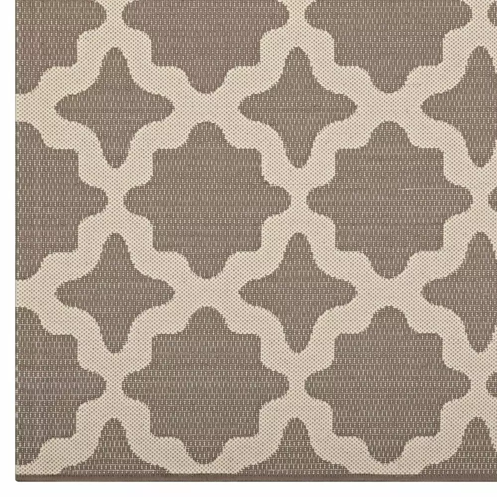Modway Cerelia 94.5×122 Moroccan Trellis Fabric Area Rug in Light/Dark Beige
