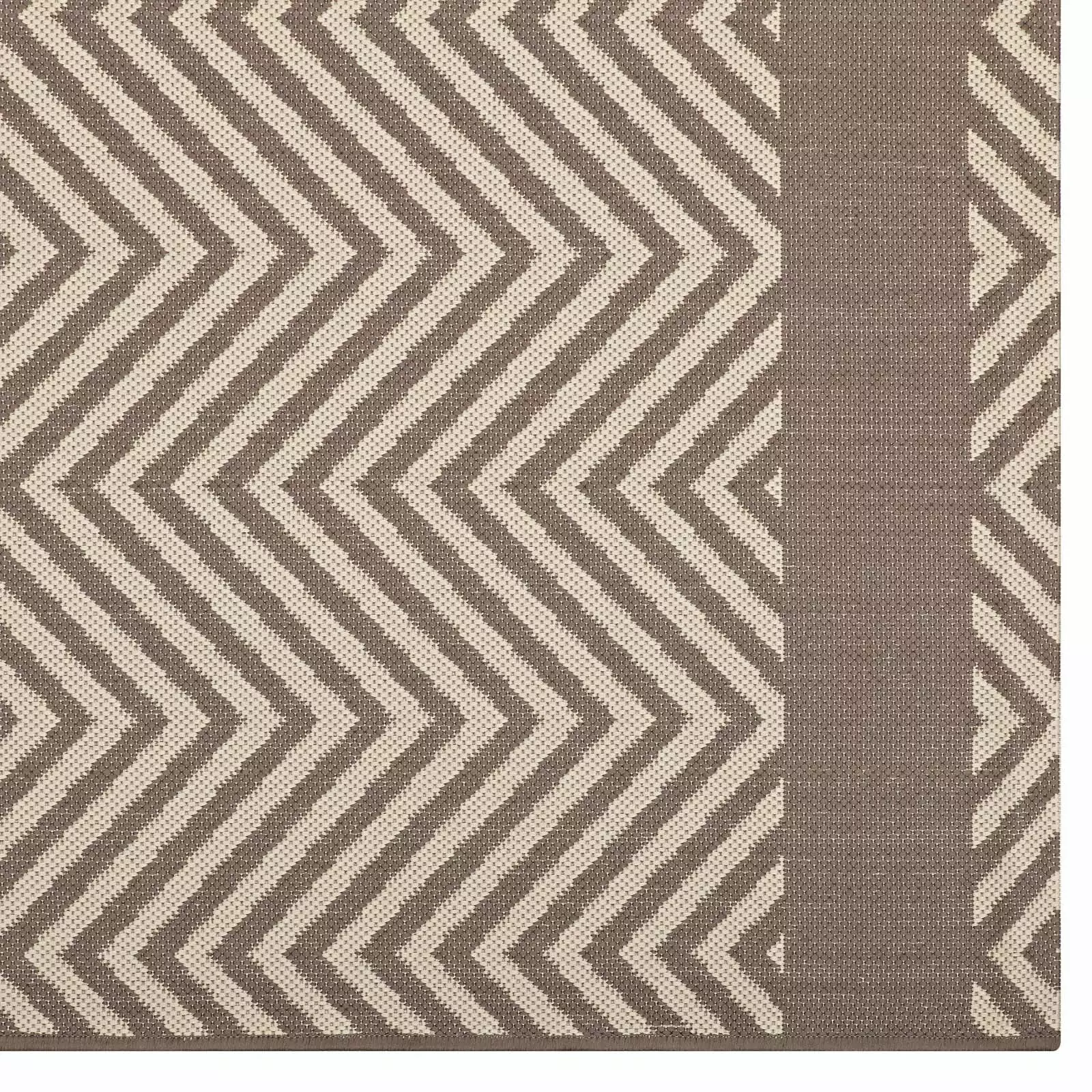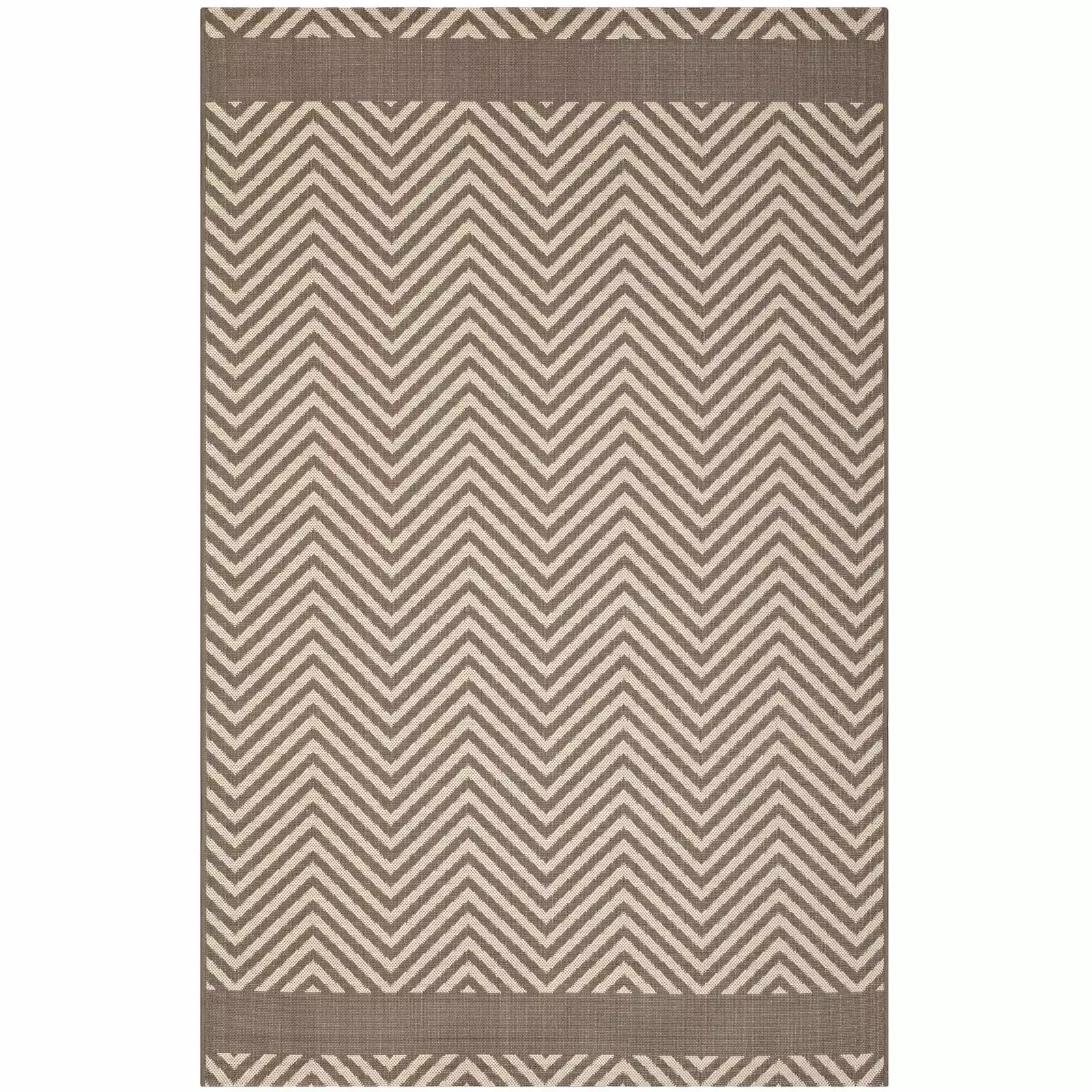 Make a sophisticated statement with the Optica chevron with end borders indoor and outdoor area rug. Patterned with an elegant design. Optica is a durable and soft machine-woven polypropylene rug that offers wide-ranging support. Featuring a geometric chevron design with a low pile weave and gripping rubber bottom. this all-weather area rug is a perfect addition to the outdoor. porch. deck. or inside the house in the living room. bedroom. kitchen or dining room. Optica is a family-friendly fade and stain resistant rug with easy maintenance. Hose down or vacuum periodically. Create a contemporary play area for kids and pets in high-traffic areas while protecting your floor from spills and heavy furniture with this carefree decor solution.