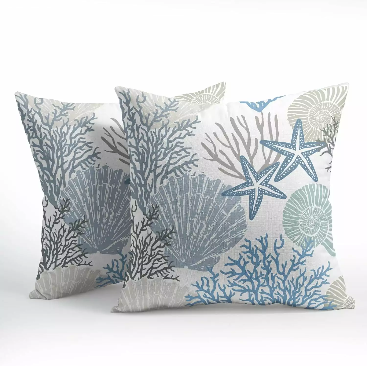 Nautical Coastal Pillow Covers 20×20 Inch Set of 2 Blue Beach Theme Ocean Seashell Coral Starfish Throw Pillow Covers Summer Outdoor Pillow Cases Cotton Linen Cushion Covers for Couch Bed Sofa Decor