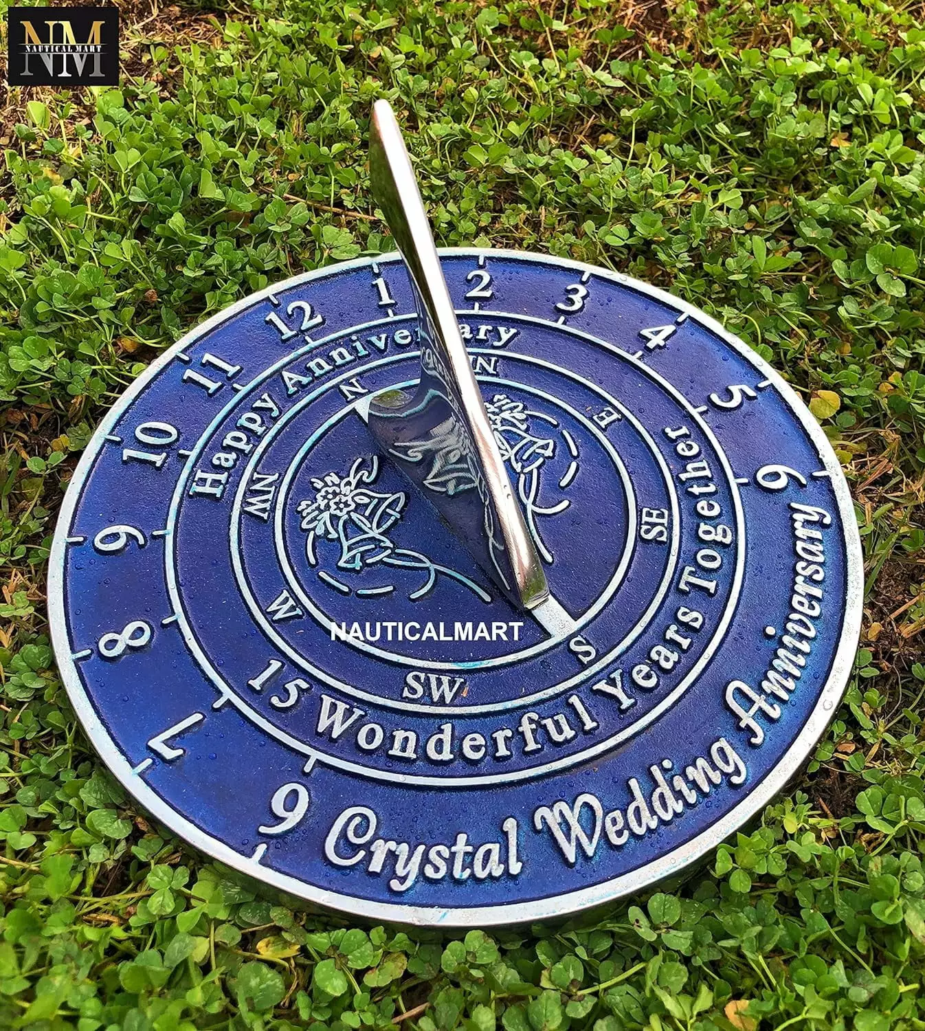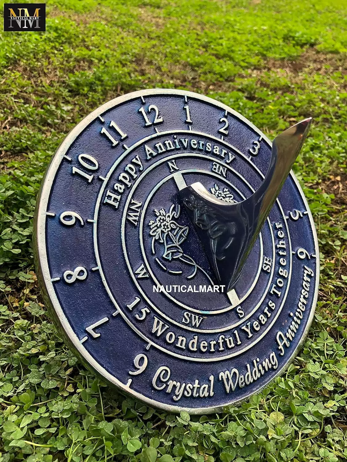 NauticalMart 15th crystal wedding anniversary sundial gift idea is a great present for him. for her or for couple to celebrate 15 year of marriage (15th anniversary)