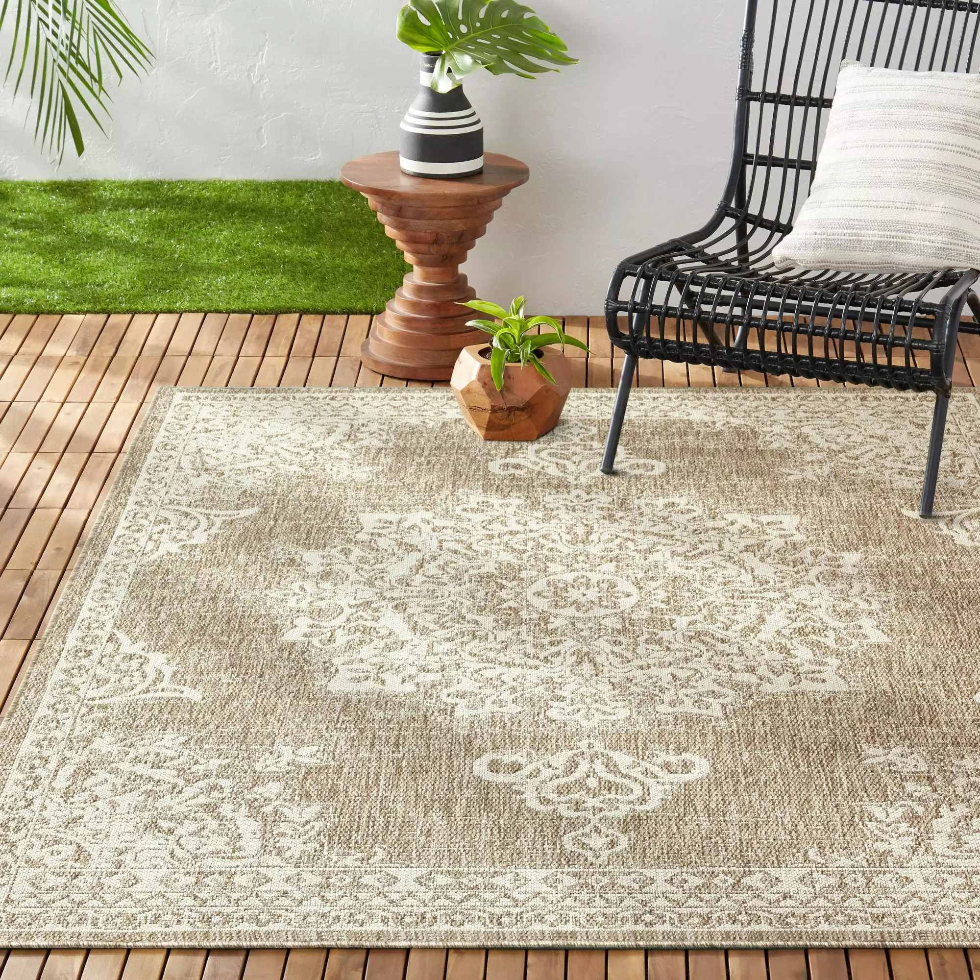 Nicole Miller New York Patio Country Azalea Transitional Medallion Indoor/Outdoor Area Rug. Taupe/Ivory . 6’6×9’2