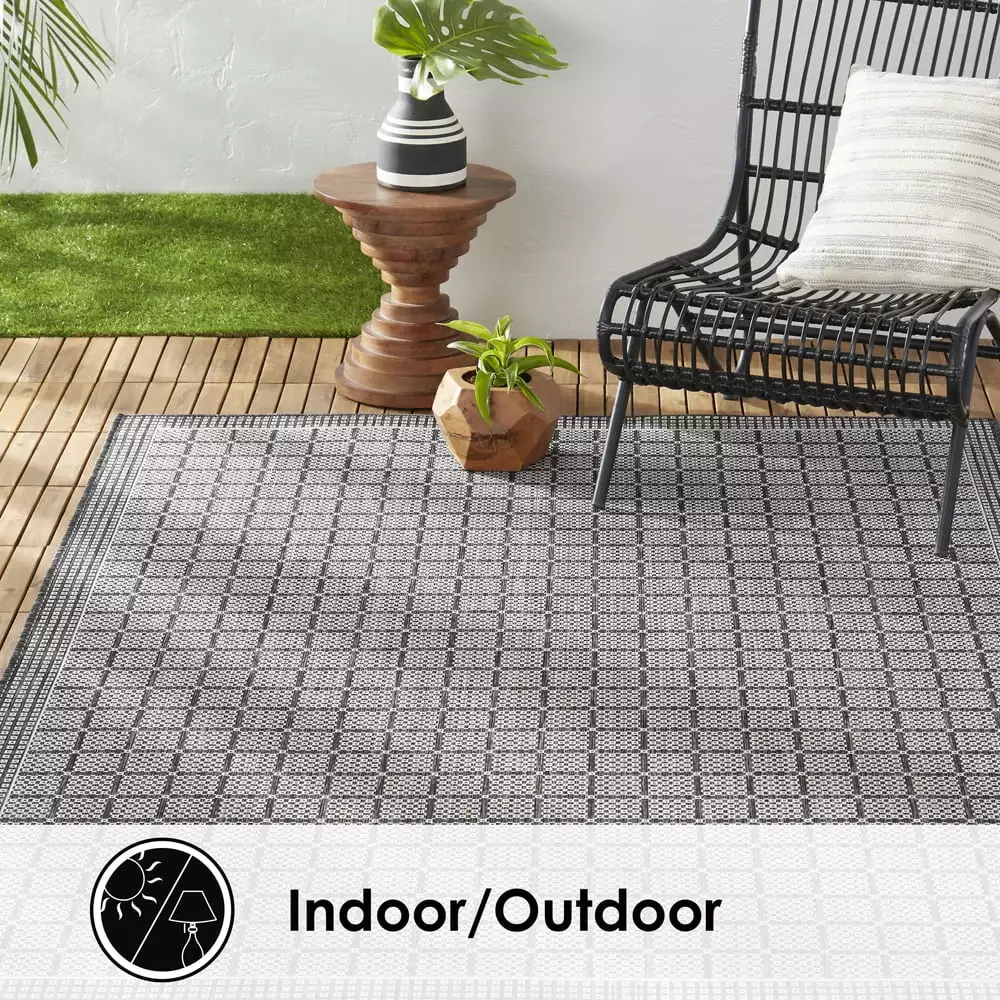 - GEOMETRIC RUG DESIGN: The allover grid pattern offers a modern look that will elevate any indoor and outdoor spaces.