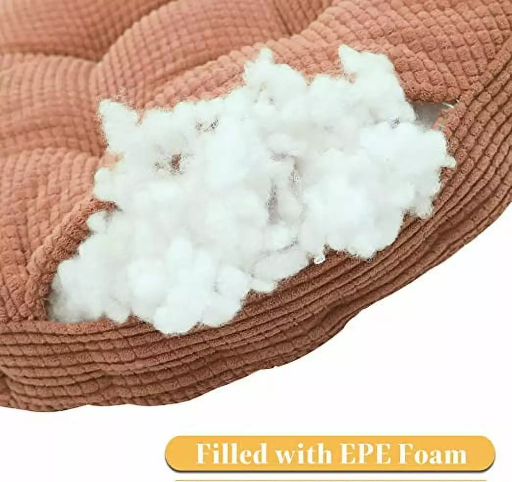 ??Round Chair Cushions With Vibrant Color??These cushions is designed with round size and with many vibrant colors. We have many colors such as blue.yellow.red.brown.orange.pink. These colorful cushions will bring your home more elegant style. And the ruffed edges of the cover are manually sewed with solid stitching. which make these cushions be more fashion.