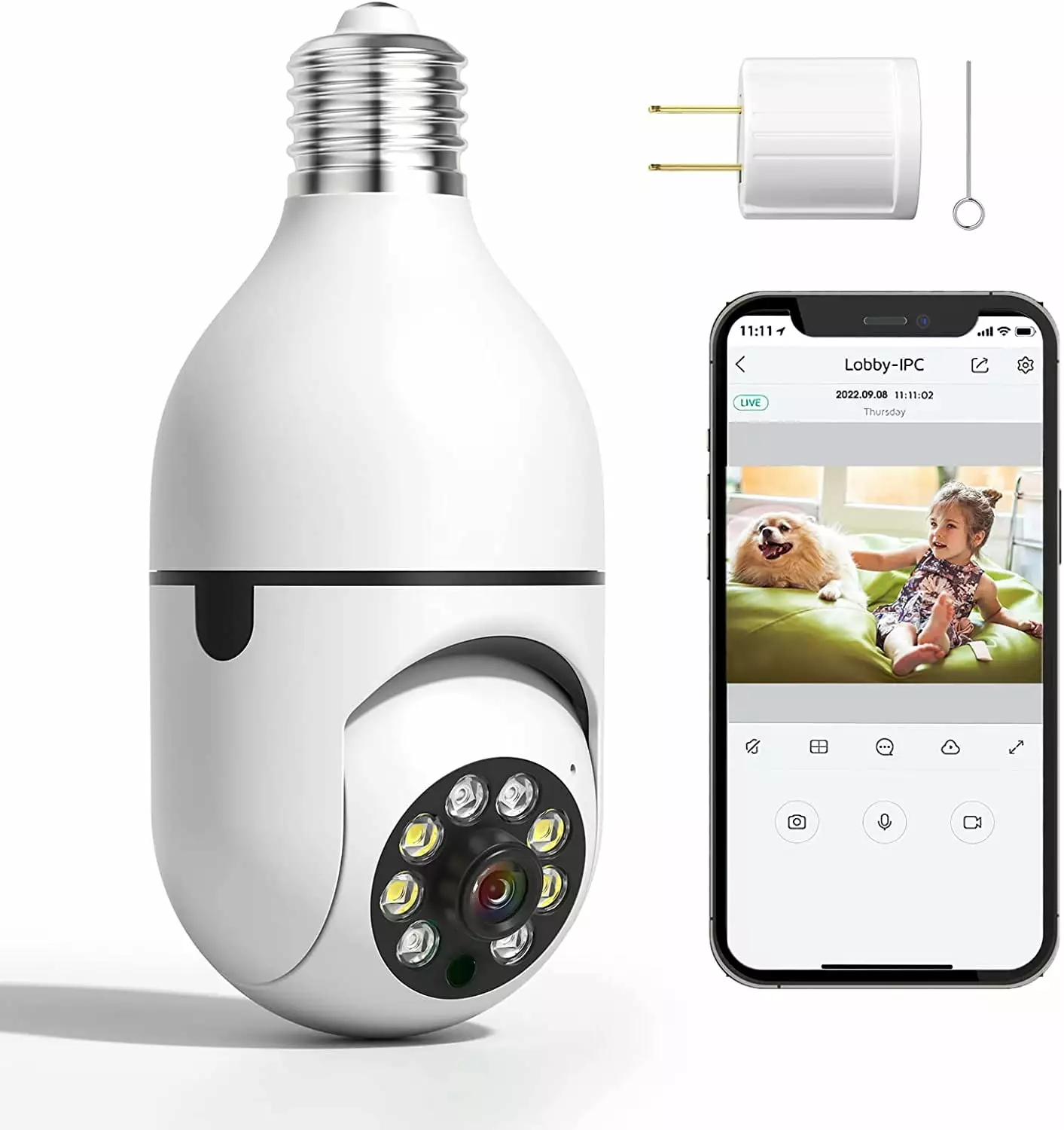 Wi-Fi Intelligent Camera. Wireless WiFi Light Bulb Camera 360Panoramic Surveillance Cam. 2.4GHz 1080P Outdoor Security Camera with Motion Detection Alarm Night Vision Two-Way-Talk Phone Remote