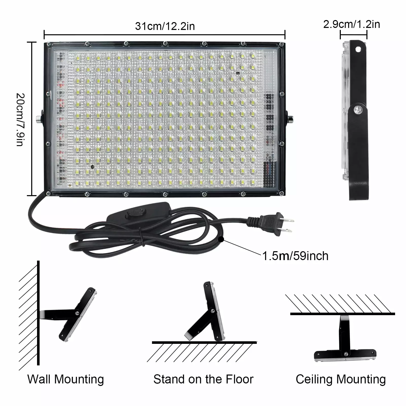 - ??Easy to Install and Use??Outdoor led floodlights with 1.5m power cord and plug and switch button. 360??adjustable bracket can meet your different angle needs. 120??beam angle illuminates the whole room. The range can reach 1530 square feet. Each light weighs only 650 grams and is easy to install on the wall.
