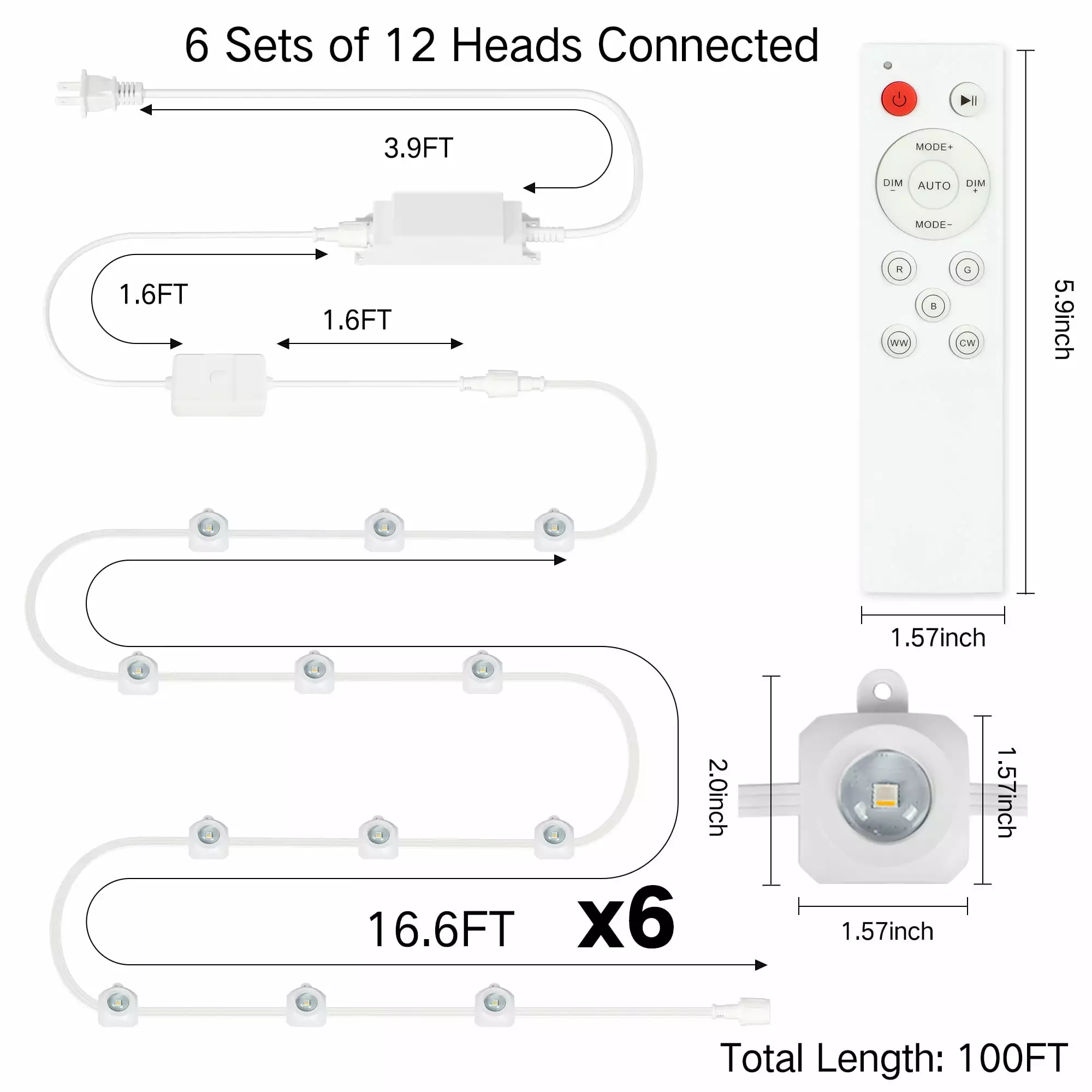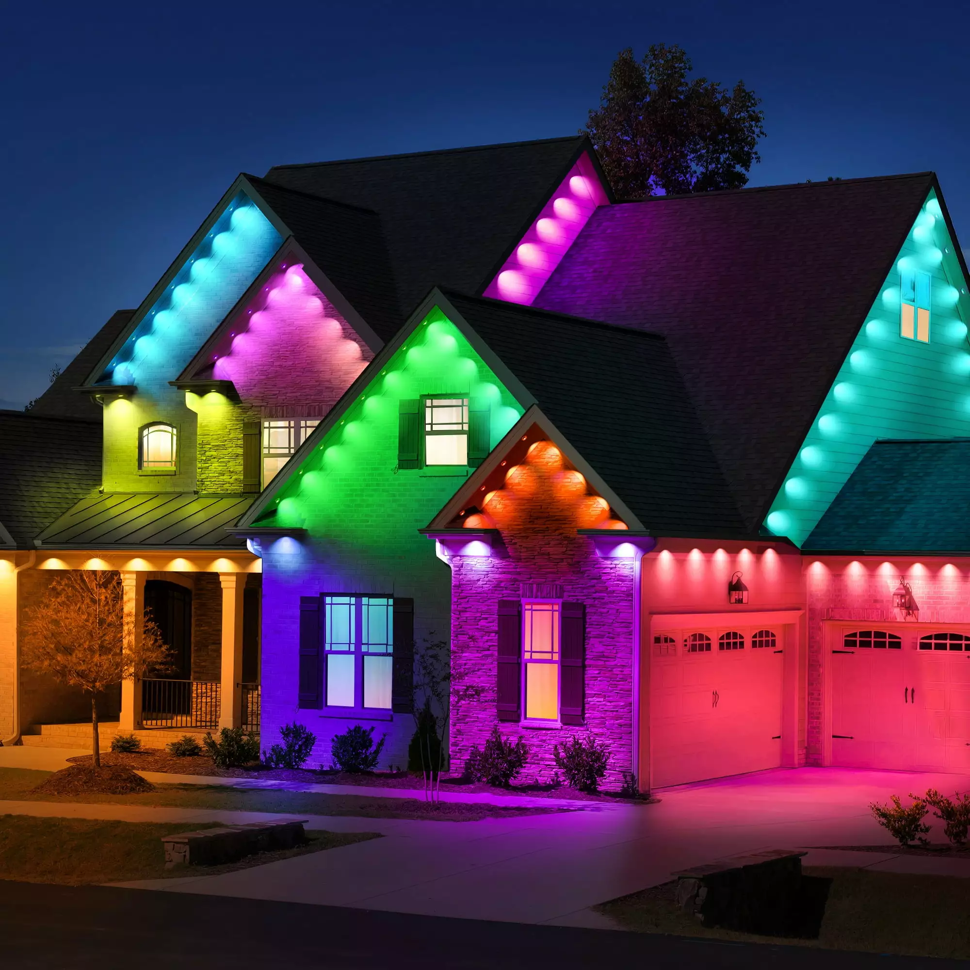 OUTON permanent outdoor lights light up the house for all occasions. With RGBIC control. you can control the color of each light bead individually to meet various DIY designs. while 44 built-in scene modes and 16 million colors are available. The luminous angle of a single lamp bead is 100 °. the light state can present a unique arc light effect. cold and warm light 2700-6500K Randomly adjustable . The whole lamp power 72W and single lamp bead lumens 50lm. much higher than other sellers of 26lm. Permanent christmas lights support a variety of control methods. online switch and remote control. while supporting cell phone APP and ALEXA. Google smart audio control. Installation support 3M convenient adhesive sticker way. or through the screw hole position installation. The light head supports cutting. customized length. to meet the installation needs of different scenes.