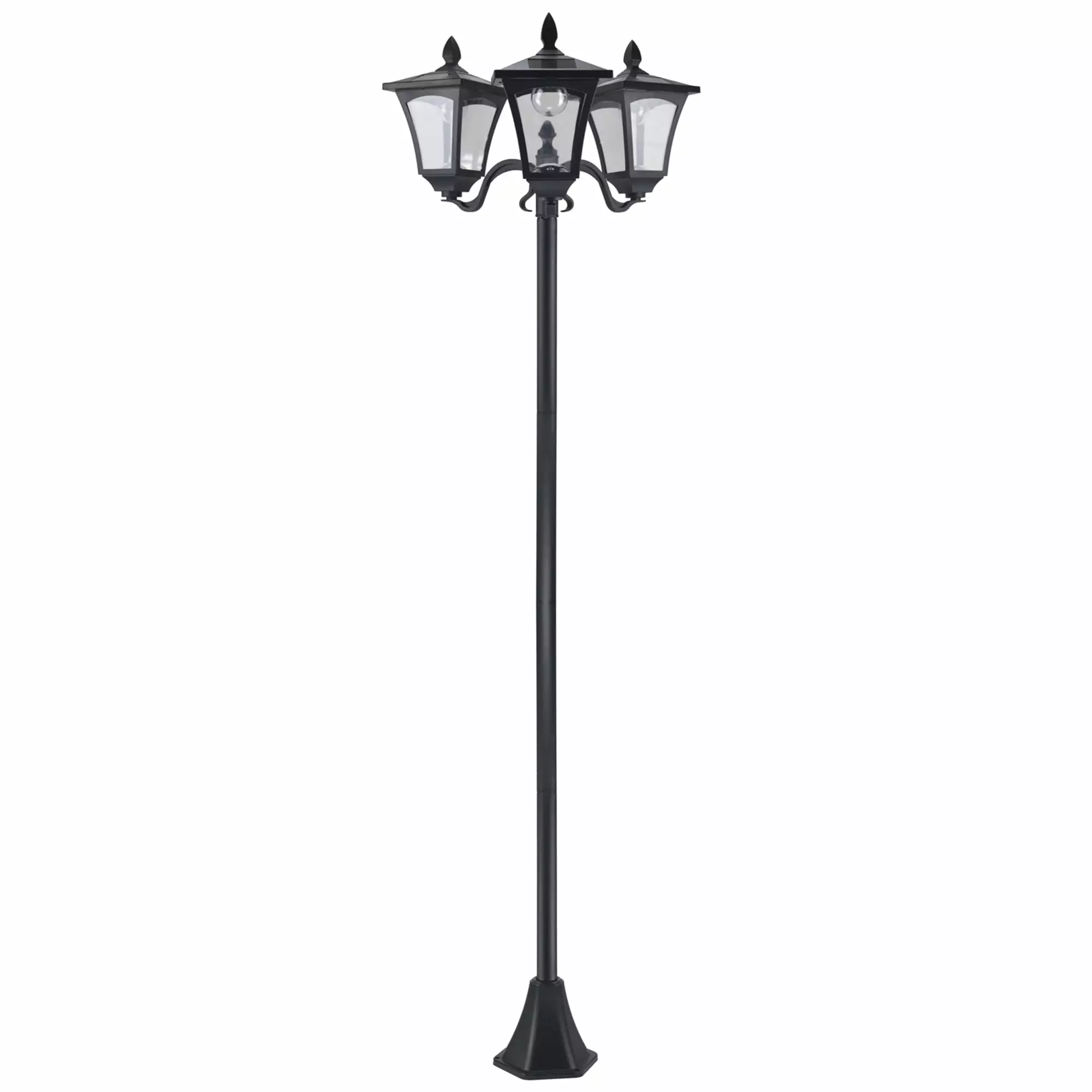 Outsunny 72 Solar Lamp Post. Triple-Head Street Light. All-Weather Waterproof Stainless Steel. Vintage Style for Garden. Lawn. Pathway. Driveway. Black