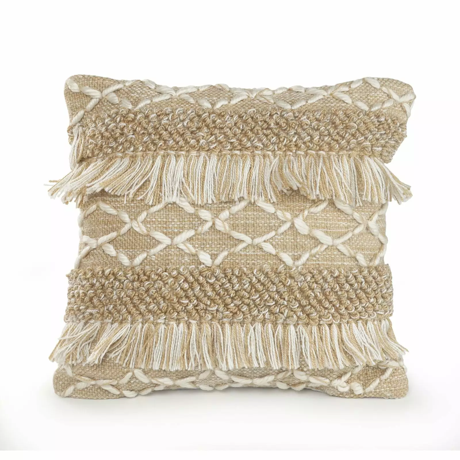 Ox Bay Neutral Soft Pom Pom Geometric Indoor/Outdoor Pillow