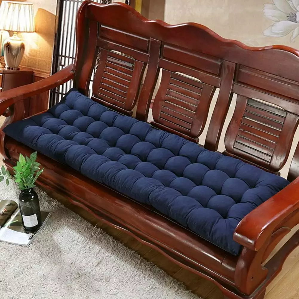 (Soft Material)This Patio Furniture Cushions is filled with 100 percent polyester fiberfill.No hair. no irritation to skin.Comfortable padding for any area of your outdoor garden or Patio.Turn Your Typical Bench Into A Padded Bench With A Well Made.Reliable And Comfortable Padded Bench Seat Cushion. (Stylish Garden Furniture Pad)The large garden bench seat pad made of high quality cotton and polyester.Fabric is UV treated to resist fading to stay looking fresh longer.Works well with seating made of wicker. wood. wrought iron. rattan and a variety of other types of patio benches. (Comfortable Seating)Comfortable. breathable and dry. The bench cushion pad are well tailored and very strong.It is comfortable. durable and folds down flat for storage.Suitable for sofas. tatami. benches. reclining chairs. bay window. and car seats. (Fixing Ties)With fixing ties for fixing.Simple tie on to attach and enjoy the comforting softness.Make the swing on your front porch more cozy and welcoming by adding this soft and attractive cushion. (Easy to clean)The outdoor cushions for easy care. clean by spot cleaning with mild soap and cool water. then let air dry.