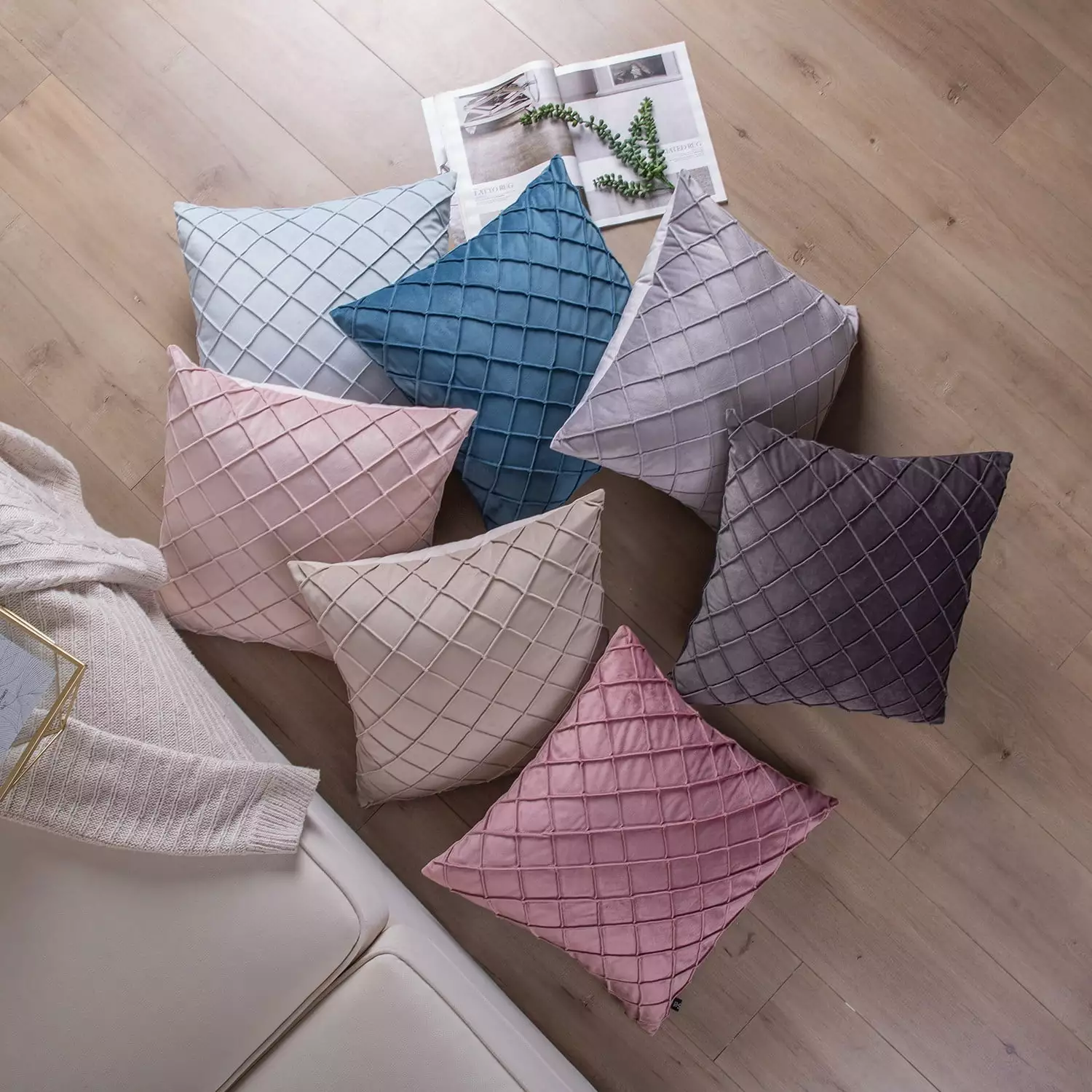 Phantoscope Velvet Series Pleated Checker Decorative Throw Pillow. 18 x 18. Navy Blue. 2 Pack