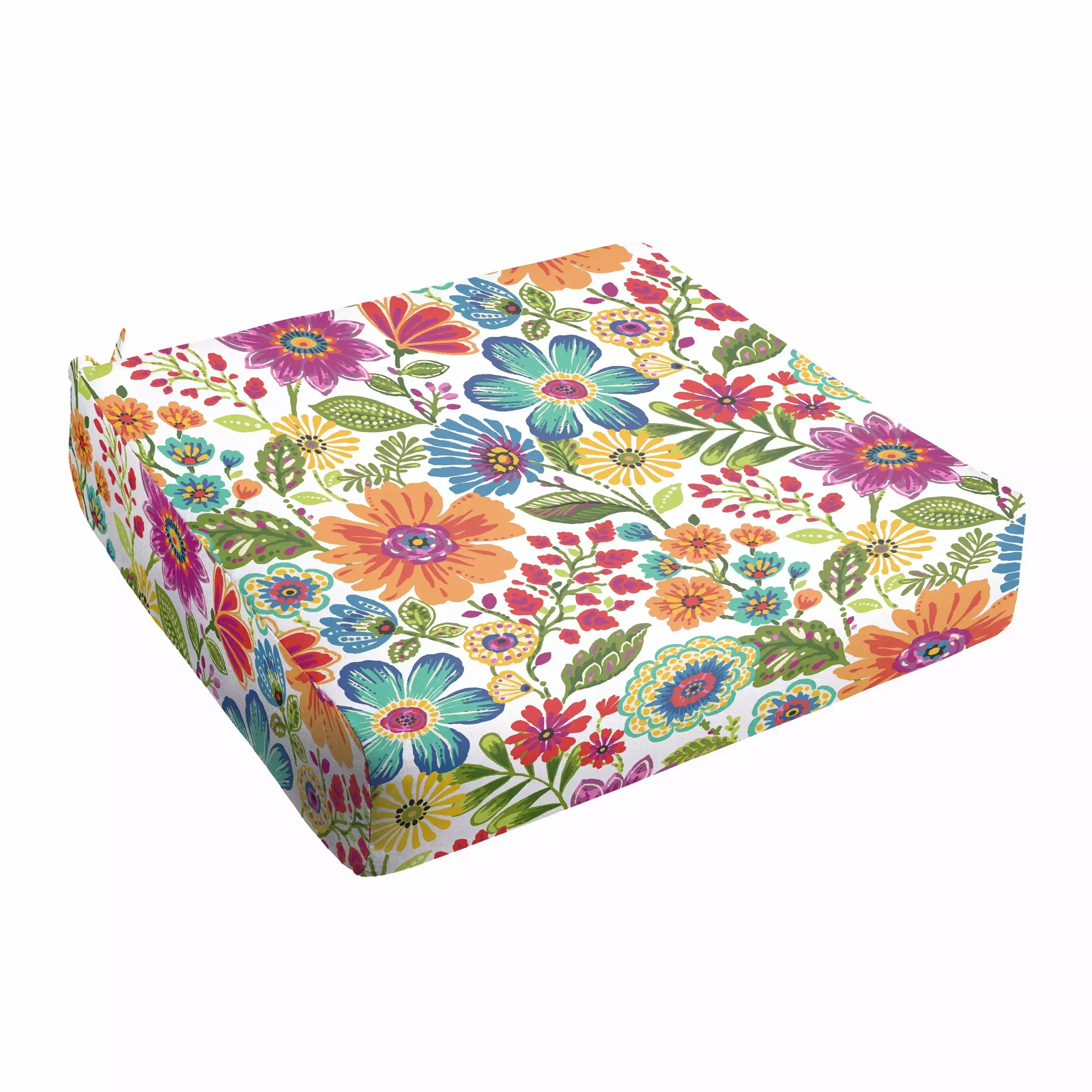 Sorra Home Multi Floral Indoor/Outdoor Deep Seating Cushion. Round Front